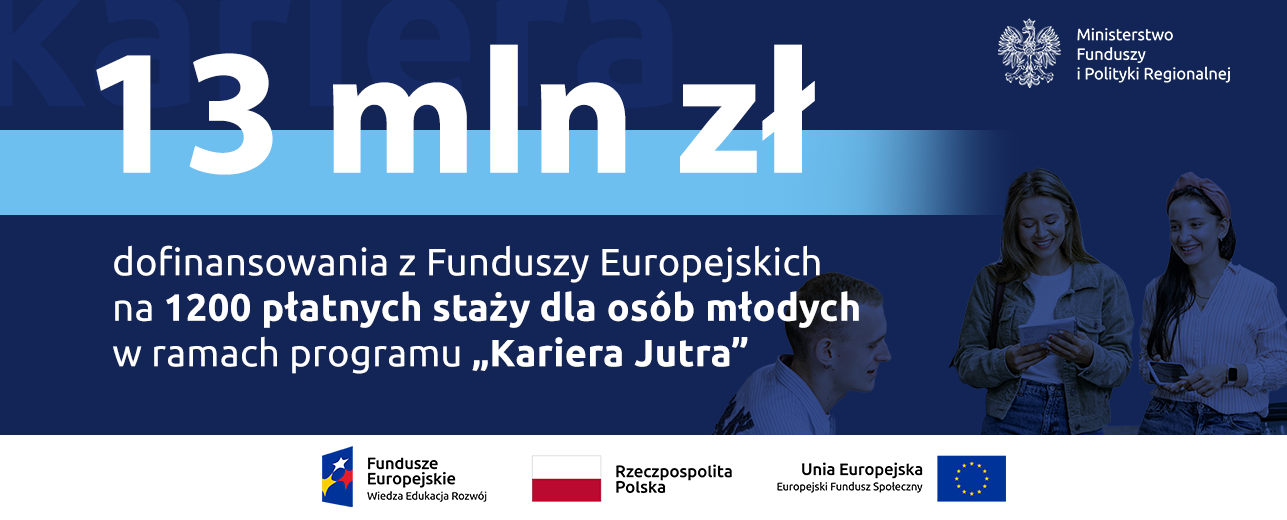 Dzięki dofinansowaniu z Funduszy Europejskich 1200 młodych osób w wieku do 30 roku życia otrzyma szanse poprawy swoich perspektyw zawodowych. Projekt „Kariera jutra” jest skierowany do młodych osób, których sytuacja na rynku pracy jest szczególnie trudna. Preferencyjny dostęp do staży będą miały m.in. osoby z niepełnosprawnościami, kandydaci zamieszkujący w mniejszych ośrodkach miejskich oraz na wsiach, a także osoby, które straciły zatrudnienie w czasie pandemii.