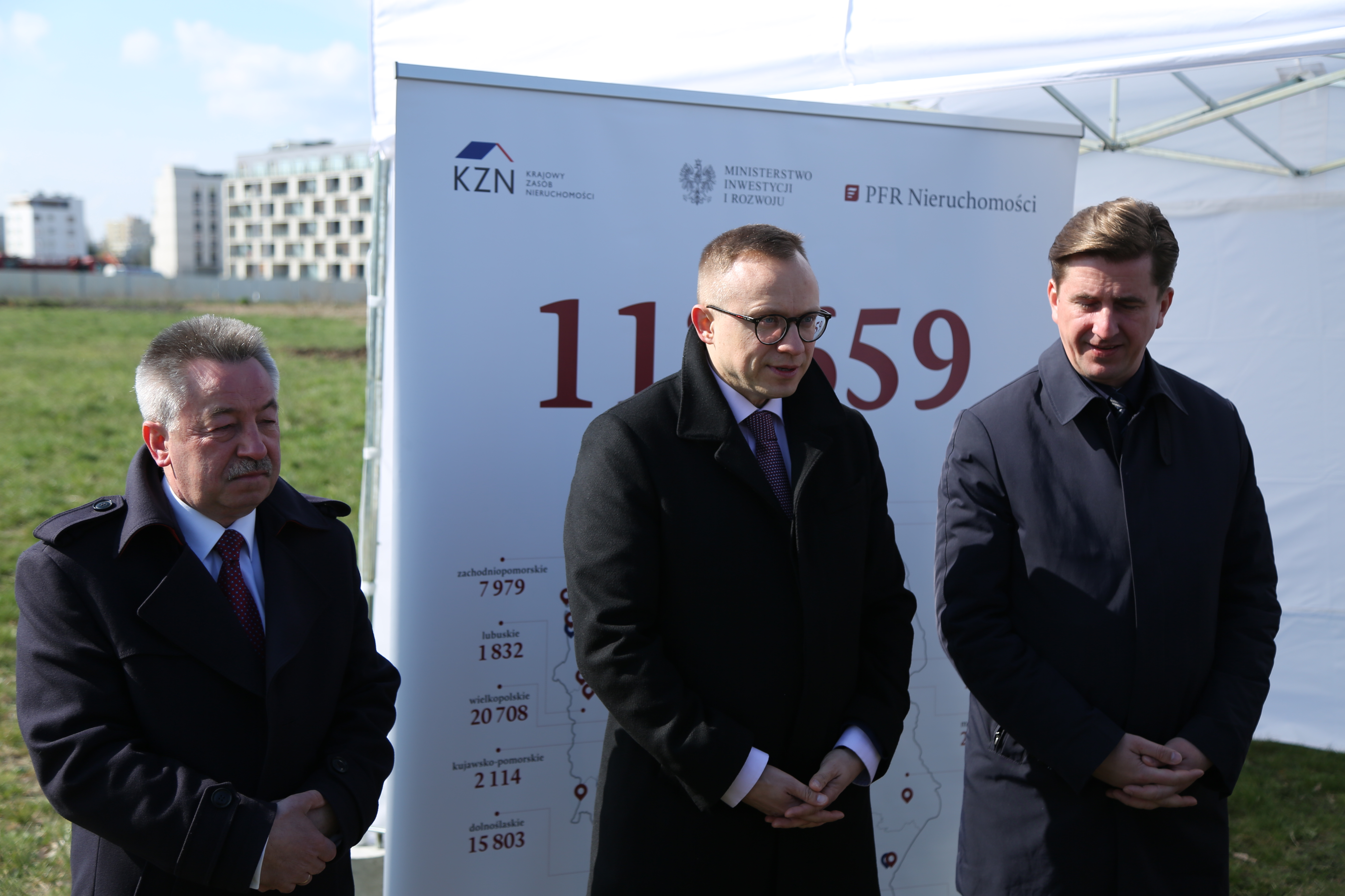 - Stoimy dziś na warszawskiej działce u zbiegu ulic Gilarskiej i św. Wincentego. To ponad 4,5 hektarowy grunt, na którym powstanie osiedle na 700 mieszkań. Ta atrakcyjna, dobrze skomunikowana lokalizacja jest jedną z wielu, które już znajdują się w zasobie KZN. Dzięki nim i projektom realizowanym przez spółkę PFR Nieruchomości w samej Warszawie powstanie ponad 15 tysięcy mieszkań w ramach rządowego programu. Mieszkanie Plus jest tańsze dla najemców niż kredyt hipoteczny o 24%, a dzięki dopłatom do czynszu Mieszkanie na Start nawet o 34%. Dziś pierwsze czytanie nowelizacji ustawy o KZN, po jej przyjęciu będziemy gotowi, by rozpocząć realizację 100 tysięcy mieszkań, o których mówił premier Mateusz Morawiecki – zaznaczał podczas konferencji prasowej Artur Soboń, wiceminister inwestycji i rozwoju.