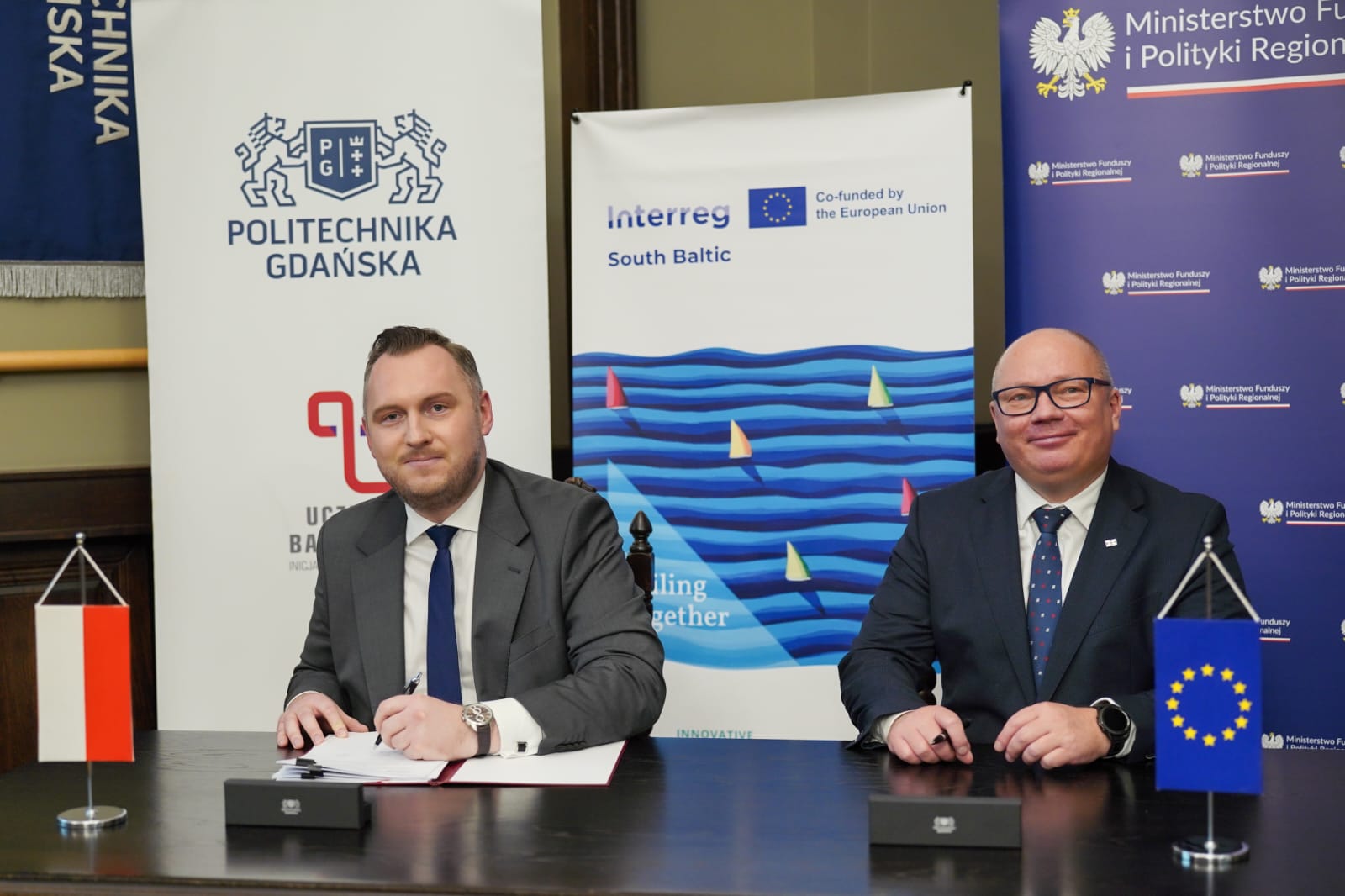 Wiceminister funduszy i polityki regionalnej Konrad Wojnarowski podpisał w Gdańsku 5 umów o dofinansowanie projektów z programu Interreg Południowy Bałtyk 2021-2027. Z ramienia MFiPR w uroczystości uczestniczył również wiceminister Jacek Karnowski. Dofinansowane projekty to rozwiązania na rzecz badań wraków i oczyszczania Bałtyku, produkcji zielonej energii, recyklingu opakowań papierowych, lepszego wykorzystania odpadów.