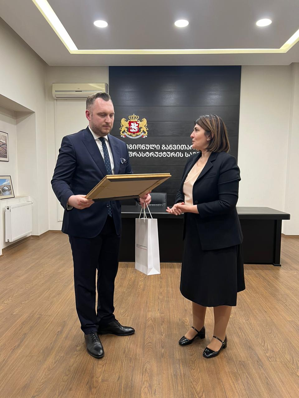 Wizyta ministra Konrada Wojnarowskiego w Gruzji była także okazją do spotkań z przedstawicielami gruzińskiej administracji centralnej. Minister rozmawiał z Panią Mzią Giorgobiani, wiceministrem rozwoju regionalnego i infrastruktury Gruzji, a także z Guramem Guramishvili, wiceministrem gospodarki i zrównoważonego rozwoju. Ministrowie omawiali kierunki i warunki dalszej współpracy pomiędzy Polską i Gruzją, możliwości wsparcia Gruzji w procesie akcesji do Unii Europejskiej.
