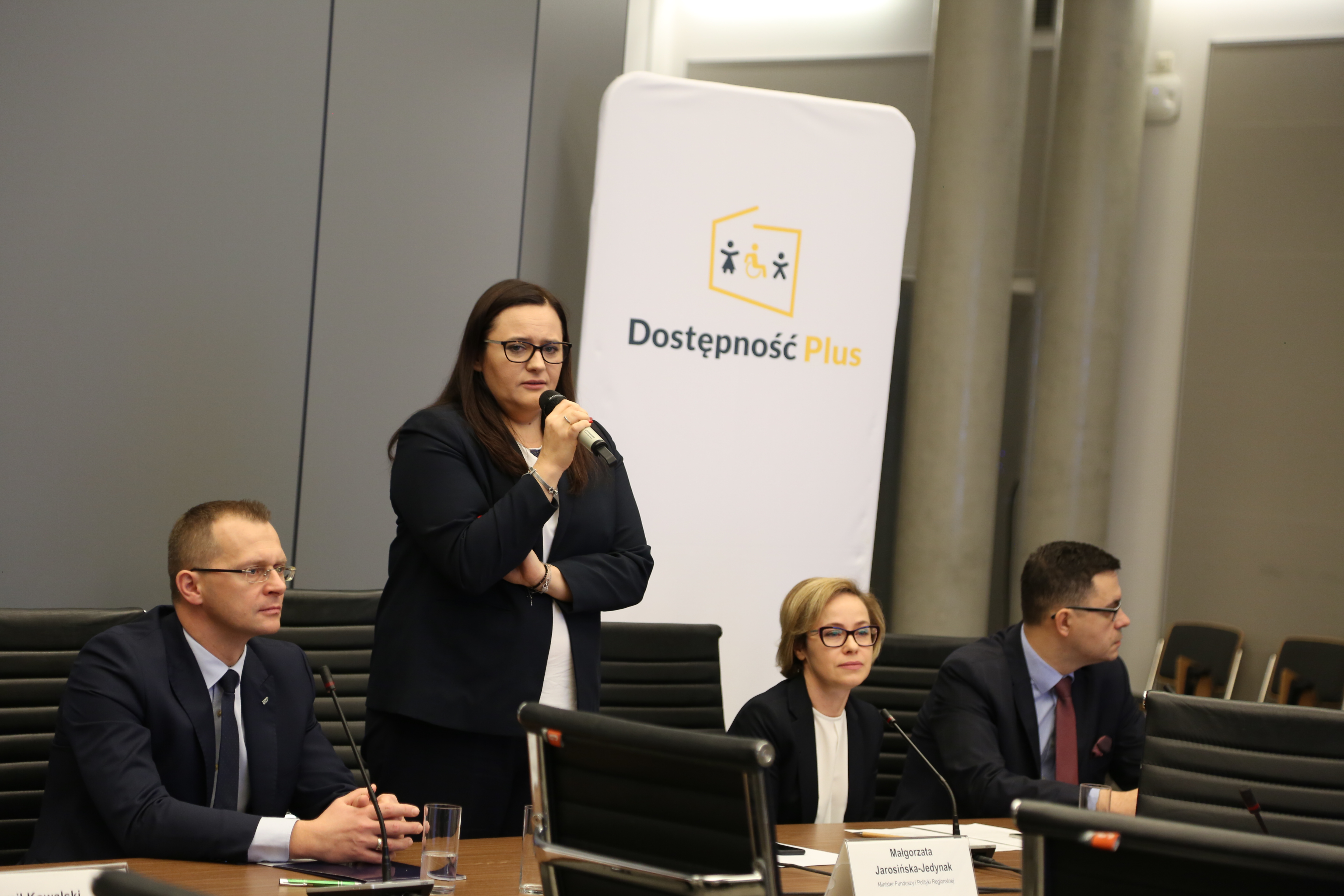 Strome schody, ciężkie drzwi, brak podjazdów, brak możliwości komunikacji dla osoby głuchej czy przeszkody, których nie może zobaczyć osoba niewidoma, to wyzwania dla wielu z nas obce, a często spotykane przez seniorów i osoby z niepełnosprawnościami, choćby tymczasowymi. Nawet jeśli dzisiaj ktoś stwierdza, że dostępność go nie dotyczy, powinien zrozumieć, że z upływem czasu jego siły i sprawność będą malały – mówiła Małgorzata Jarosińska-Jedynak, minister funduszy i polityki regionalnej.