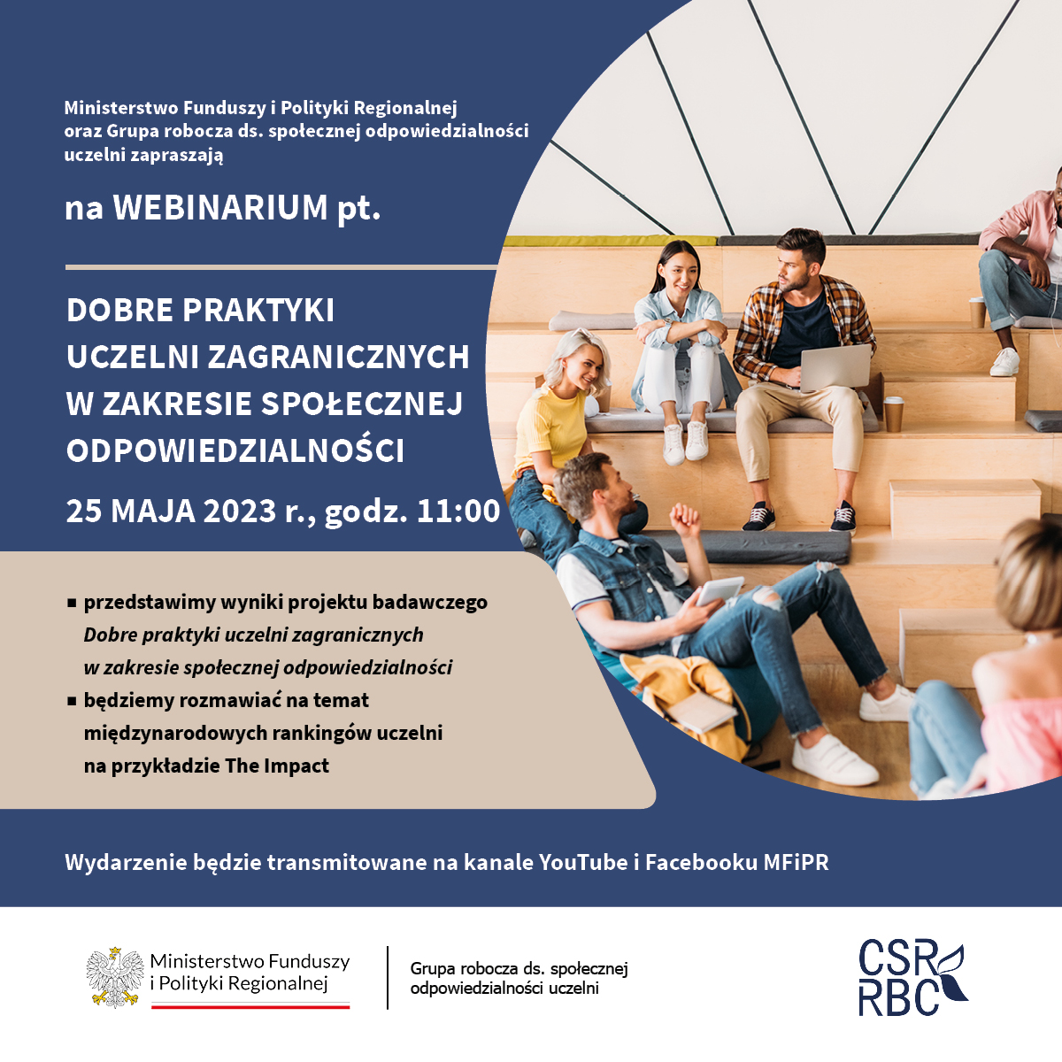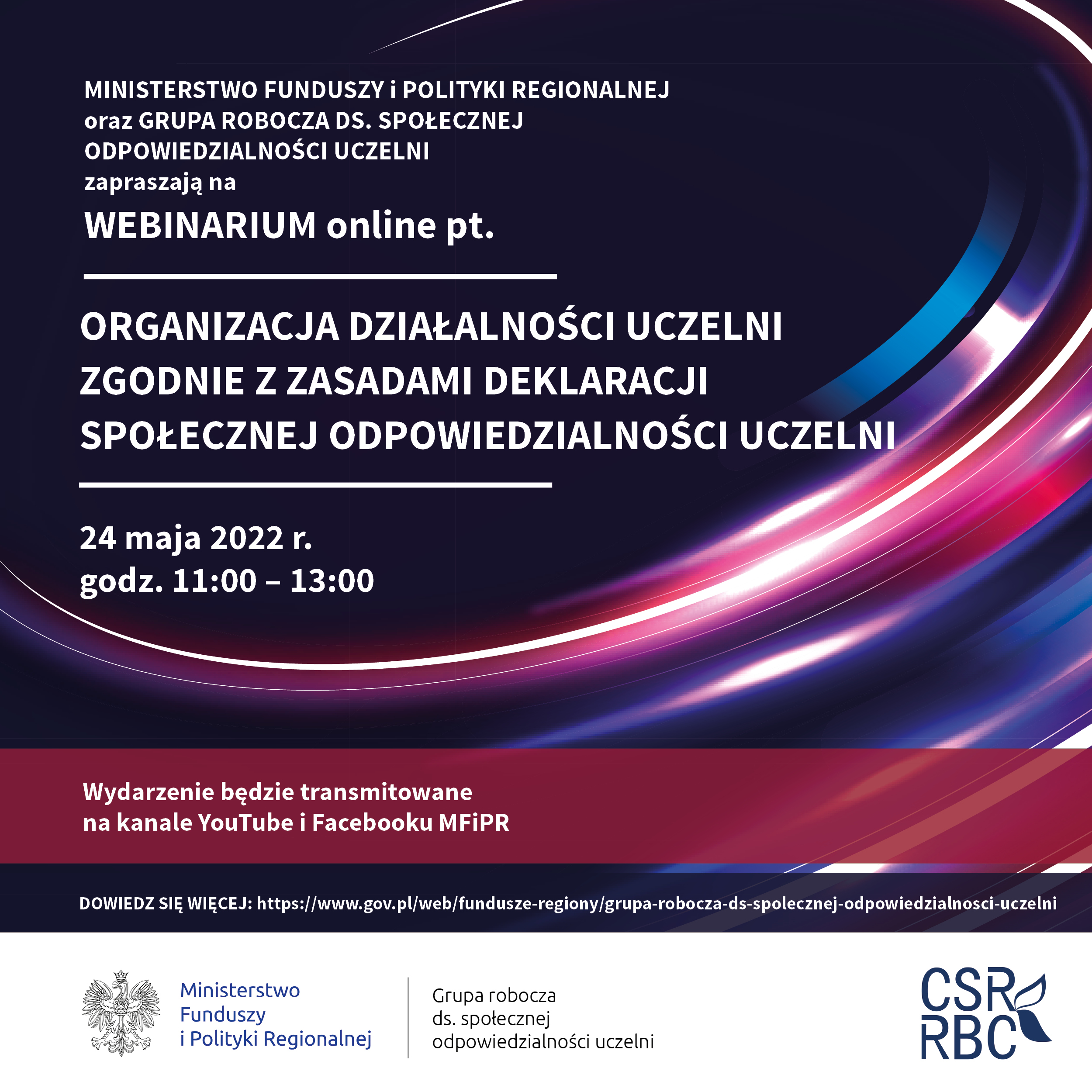 Dnia 21 marca 2023 r. odbyło się webinarium online pt. „Społeczna odpowiedzialność polskich uczelni oczami interesariuszy wewnętrznych” zorganizowane przez Ministerstwo Funduszy i Polityki Regionalnej oraz Grupę roboczą ds. społecznej odpowiedzialności uczelni.