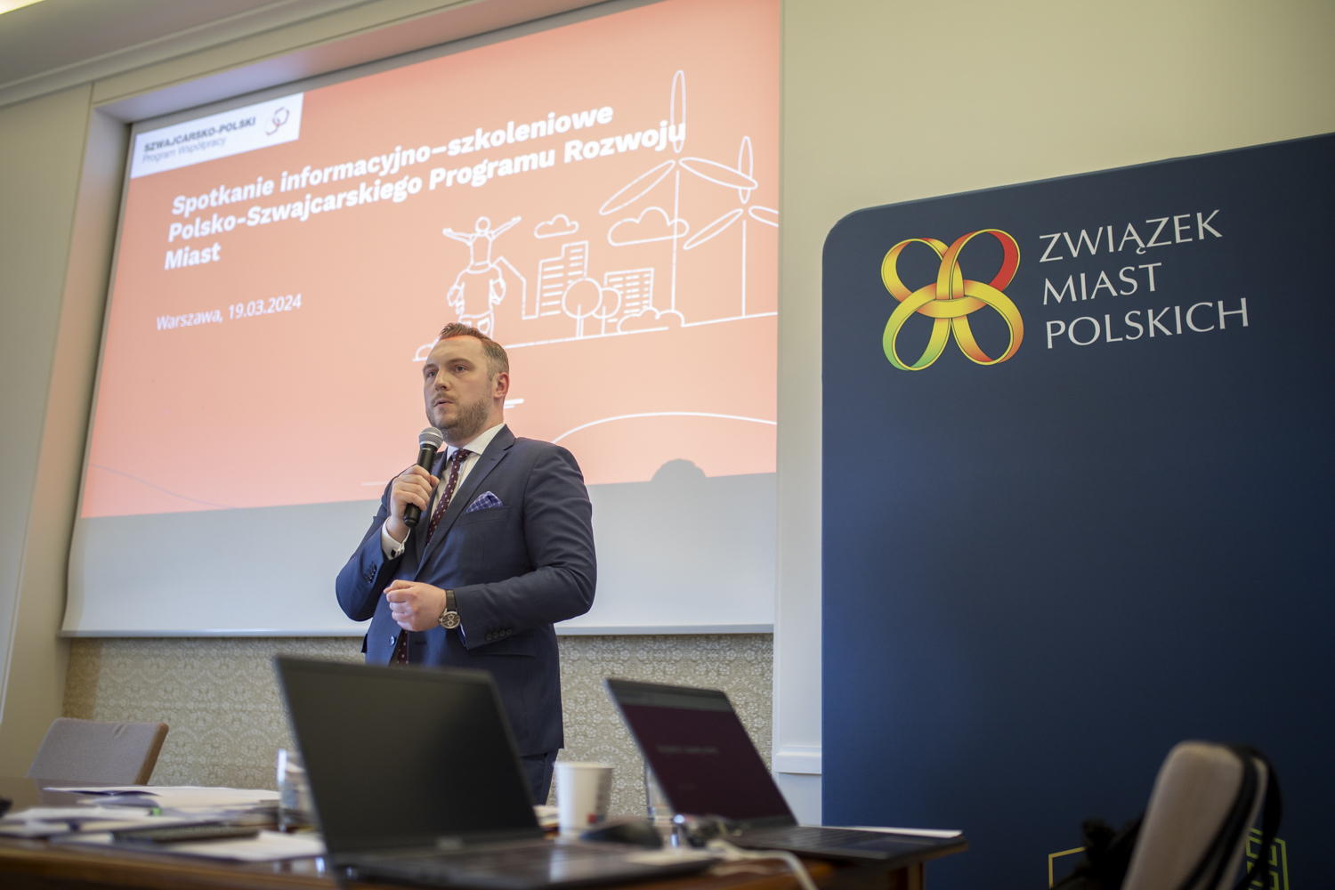 Wiceminister funduszy i polityki regionalnej Konrad Wojnarowski otworzył spotkanie w sprawie Polsko-Szwajcarskiego Programu Rozwoju Miast.