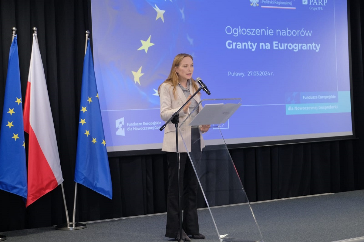 Minister funduszy i polityki regionalnej Katarzyna Pełczyńska-Nałęcz i p.o. prezesa Polskiej Agencji Rozwoju Przedsiębiorczości Joanna Zembaczyńska-Świątek przedstawiły dzisiaj w Parku Naukowo-Technologicznym w Puławach szczegóły wsparcia. Celem ogłoszonych naborów jest zachęcić MŚP i organizacje badawcze do szerszego udziału w programach i konkursach ogłaszanych przez Komisję Europejską na lata 2021-2027. Granty na Eurogranty mają im pomóc w skutecznym ubieganiu się o środki z UE.