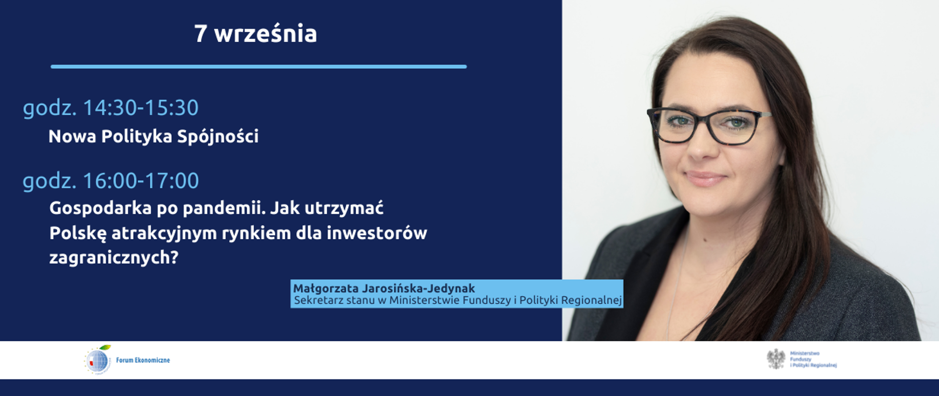 XXX Forum Ekonomiczne w Karpaczu - panel z udziałem wiceminister Małgorzaty Jarosińskiej-Jedynak, godz. 14:30-15:30, sala 6.25, Forum Regionów.