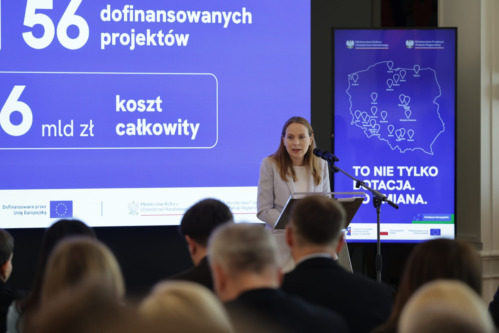 Jak dodała szefowa MFiPR, Za tymi liczbami stoją konkretne działania. To m. in. wsparcie dla Kopalni Soli w Bochni, przebudowa Domu Plastyka w Paczkowie, modernizacja Miejskiego Centrum Kultury w Skarżysku-Kamiennej, rewitalizacja twierdzy w Giżycku czy zamku w Kwidzynie. To również działania systemowe: termomodernizacja 27 budynków archiwów, modernizacja energetyczna 33 szkół artystycznych czy digitalizacja 7,5 miliona dokumentów – starodruków, obrazów i dzieł sztuki – m.in. w Narodowym Muzeum Techniki czy Muzeum Podlaskim w Białymstoku. Kultura w Polsce jest obecna wszędzie – tam, gdzie są ludzie, instytucje i wspólnoty, które ją tworzą. A środki europejskie, z których korzystamy, dziś realnie tę kulturę wzmacniają. Budują naszą tożsamość – różnorodną, zakorzenioną w historii i jednocześnie nowoczesną.