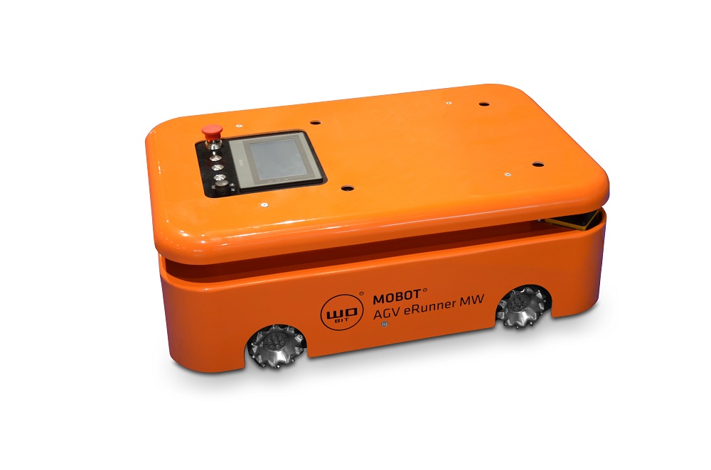 Samojezdny robot mobilny MOBOT® AGV eRunner MW, najmniejszy z rodziny MOBOT® służy do automatyzacji transportu wewnętrznego. Jego zadaniem jest autonomiczny transport towarów między wyznaczonymi punktami.