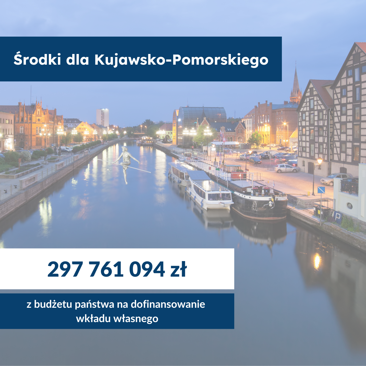Województwo kujawsko-pomorskie otrzyma prawie 300 mln zł z budżetu państwa na dofinansowanie wkładu własnego w programie regionalnym Fundusze Europejskie dla Kujaw i Pomorza 2021-2027.