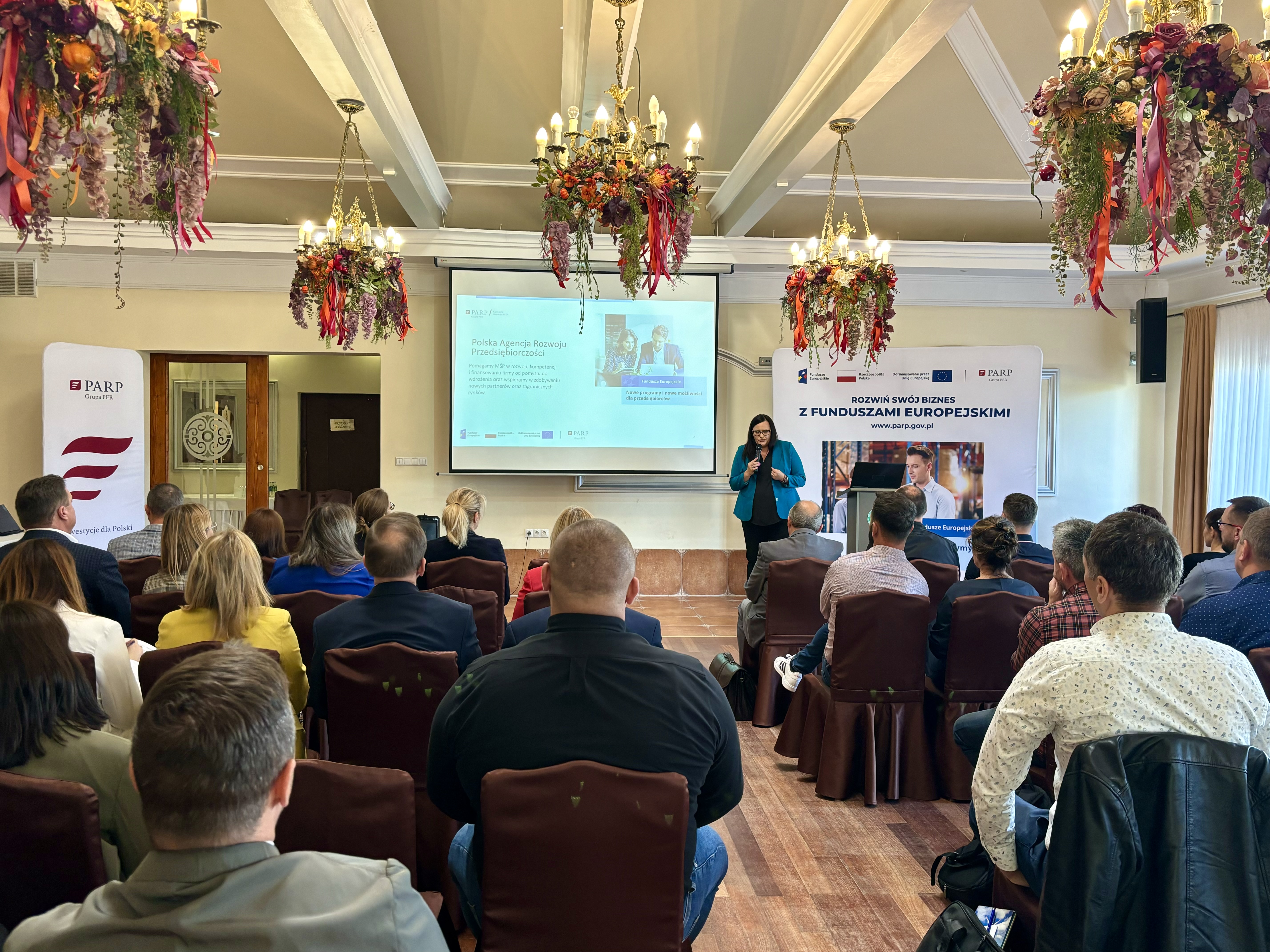 Uczestnicy spotkania dowiedzieli się, jak skutecznie – przy wsparciu Funduszy Europejskich – rozwinąć swoją firmę. Doświadczeni praktycy z Polskiej Agencji Rozwoju Przedsiębiorczości, Narodowego Centrum Badań i Rozwoju oraz Banku Gospodarstwa Krajowego opowiedzieli o nowych programach realizowanych z Funduszy Europejskich 2021-2027, przybliżyli warunki i możliwości udziału w wybranych projektach i konkursach.