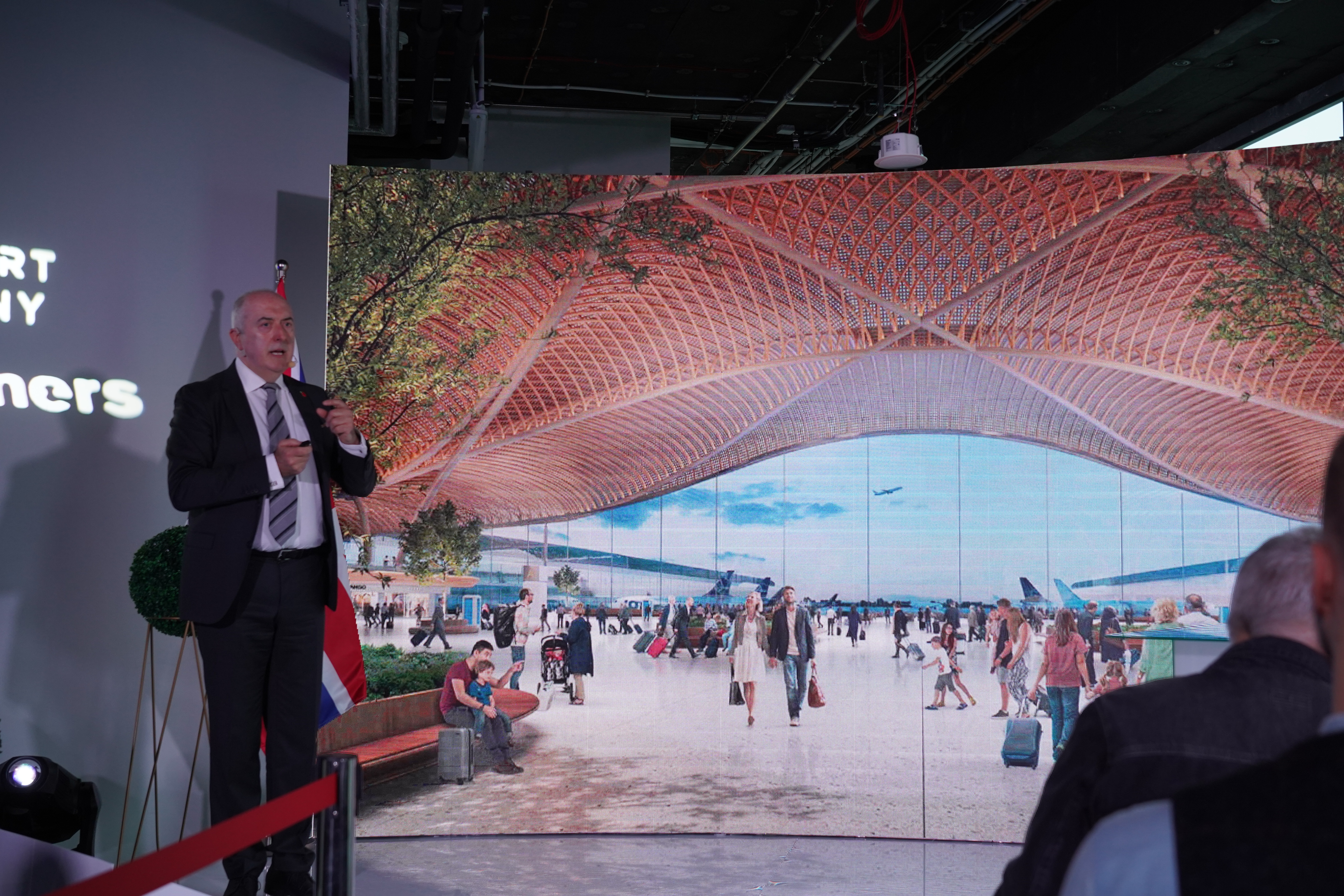 Pierwsze koncepcje projektowe firmy Foster + Partners zaprezentowane w ramach postępowania przetargowego obejmują terminal przesiadkowy i strefę obsługi pasażerów, którą wypełnia bujna zieleń i naturalne światło. W tej tętniącej życiem przestrzeni ludzie gromadzą się przed podróżą lub oczekują na innych pasażerów. Miejsce to łączy trzy środki transportu węzła: lotniczy, kolejowy i drogowy.