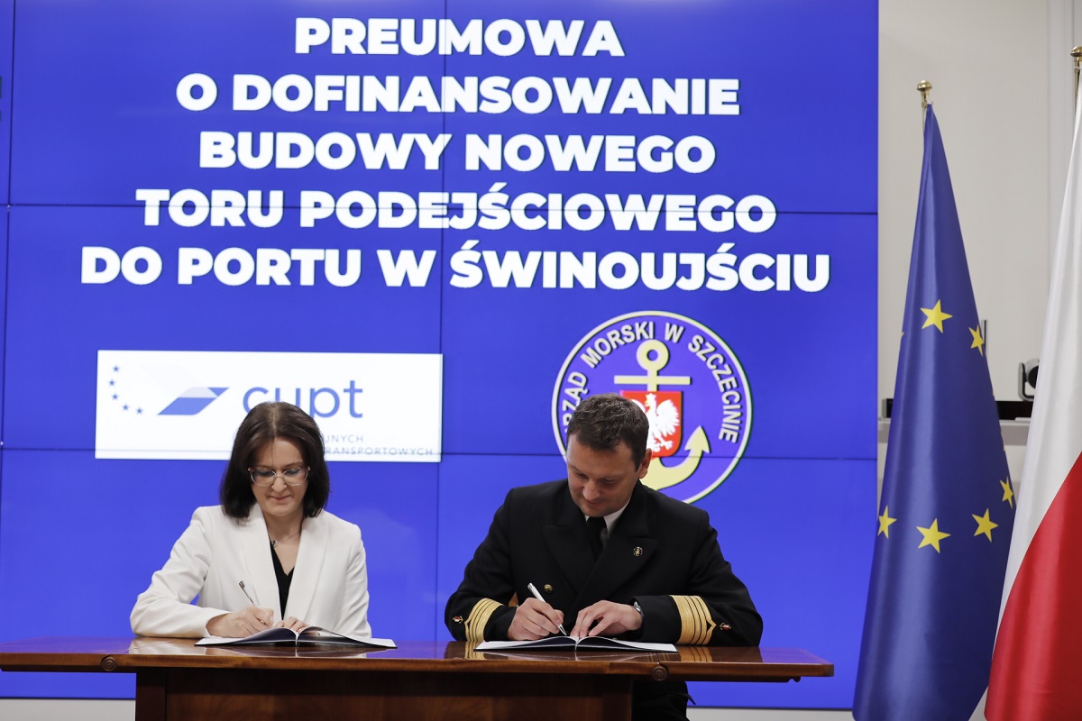 W porcie w Świnoujściu powstanie nowy tor podejściowy – we wtorek minister funduszy i polityki regionalnej Grzegorza Puda uczestniczył w uroczystości podpisania pre-umowy dofinansowania zadania pn. „Przeprowadzenie prac dla umożliwienia transportu wodnego do Portu Zewnętrznego w Świnoujściu”. Umowa została zawarta pomiędzy Centrum Unijnych Projektów Transportowych a Dyrektorem Urzędu Morskiego w Szczecinie, który będzie odpowiadał za realizację zadania. Całkowita wartość zadania objętego dofinansowaniem wynosi 7,33 mld zł, z czego około 2,8 mld zł to wsparcie ze środków unijnych.