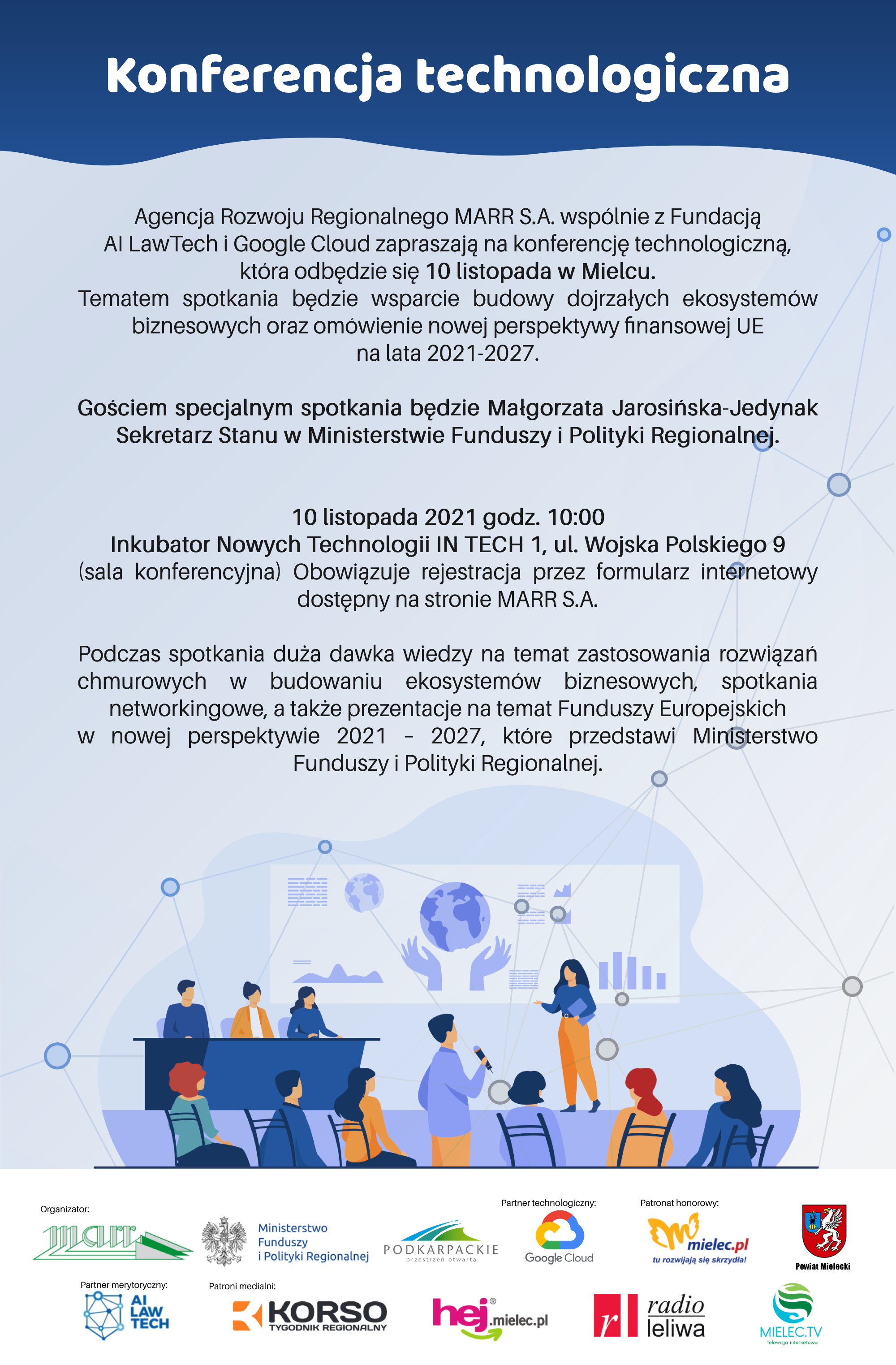 Agencja Rozwoju Regionalnego MARR S.A. wspólnie z partnerami: Fundacją AI law Tech i Google Cloud zapraszają na konferencję technologiczną do Mielca – 10 listopada.