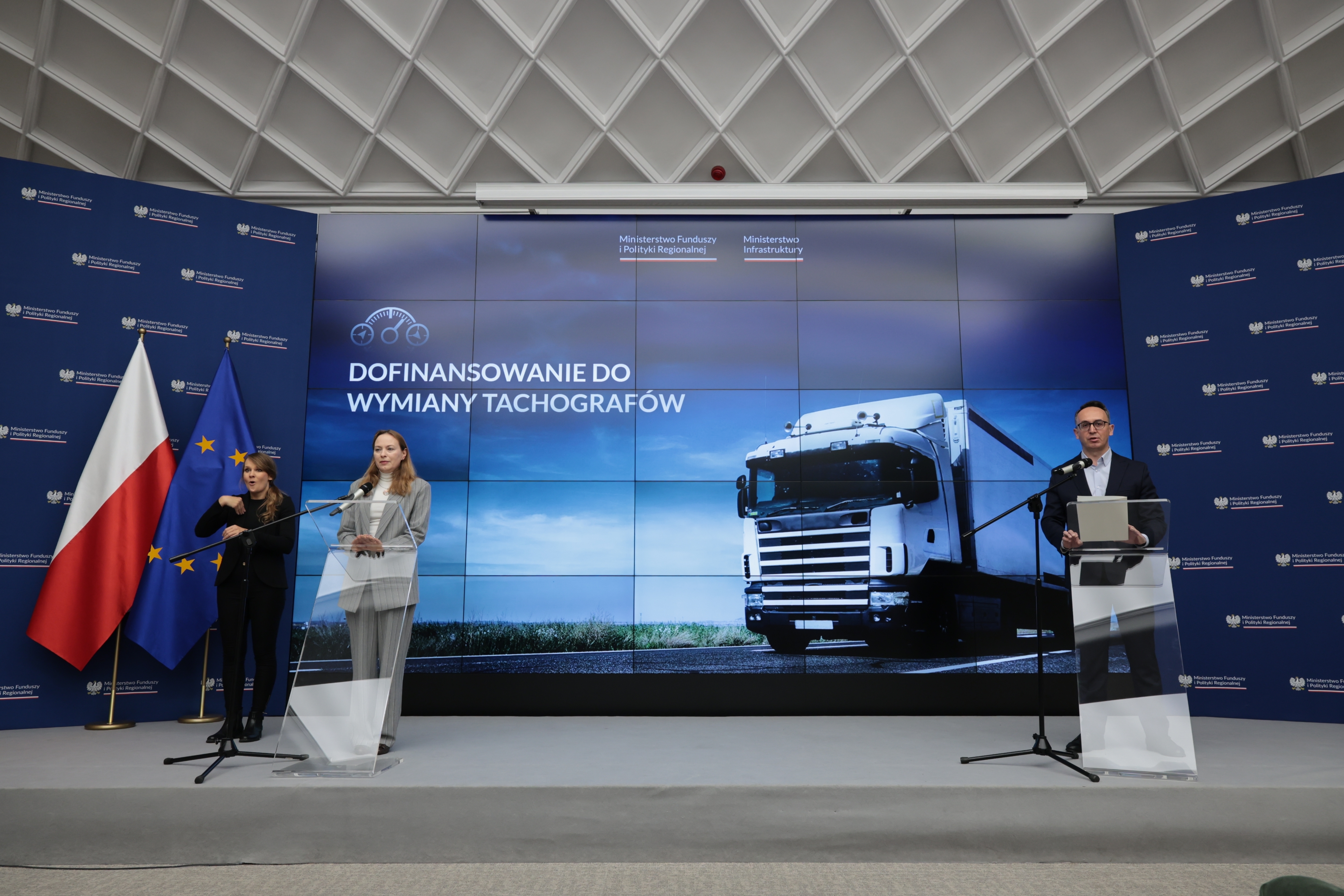 Jesteśmy w trakcie rewizji KPO, o której mówiłam, że będzie małą rewizją a stała się bardzo dużą. Zmieniamy KPO pod kątem potrzeb inwestycyjnych w Polsce. Dzisiaj chcieliśmy poinformować o kolejnej zmianie - dofinansowanie tachografów dla branży transportowej. To bardzo potrzebna inwestycja i jest na to wstępna zgoda Komisji Europejskiej