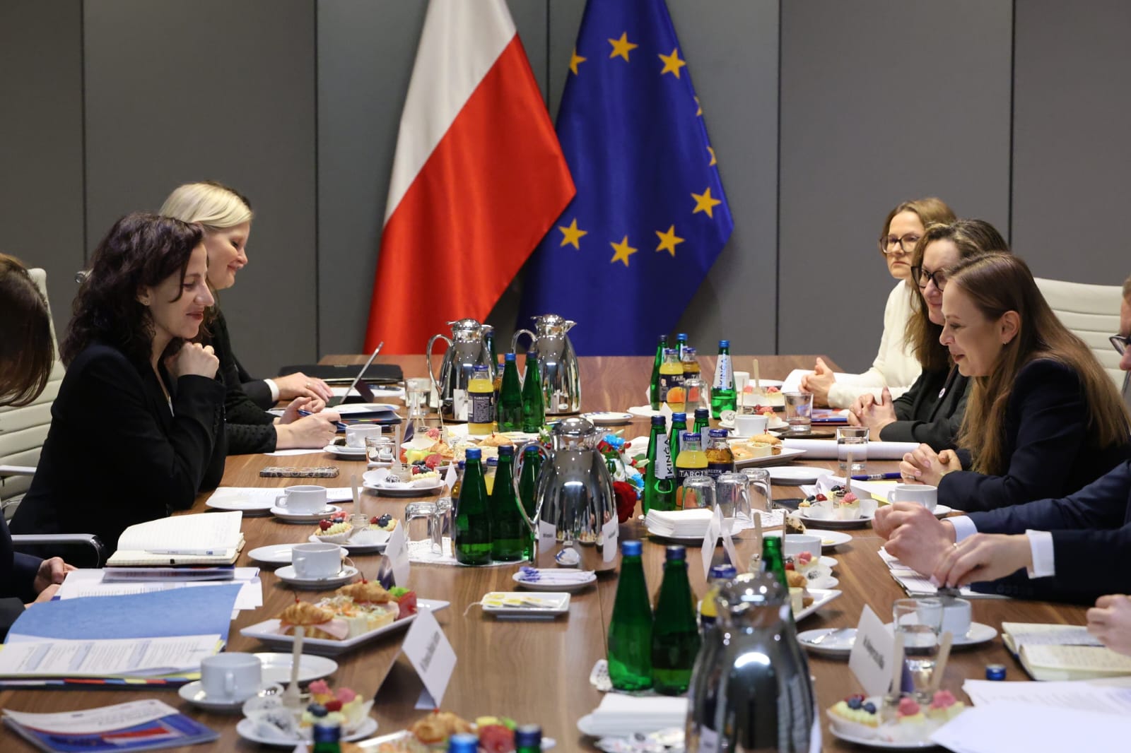 Spotkanie minister Katarzyny Pełczyńskiej-Nałęcz z wiceprzewodniczącą Roxaną Minzeatu było także okazją do omówienia stanu wdrażania i przyszłości Europejskiego Funduszu Społecznego Plus (EFS+). Dyskutowano także o priorytetach polskiej prezydencji w Radzie UE i przyszłości Polityki Spójności, a także na temat Społecznego Funduszu Klimatycznego.