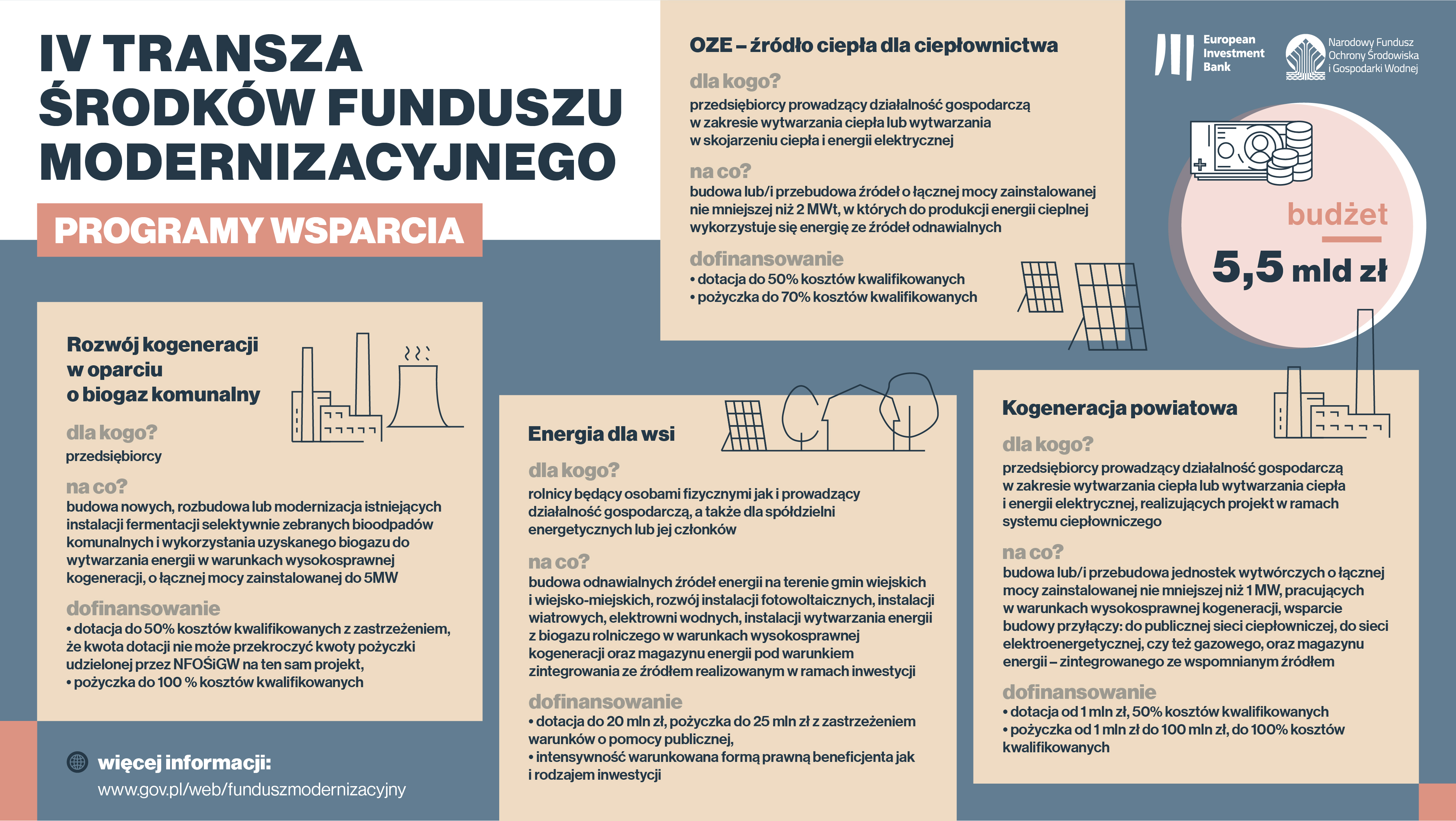 W ramach IV transzy środków Funduszu Modernizacyjnego Polska uzgodniła założenia na łączną kwotę 5,5 mld zł.