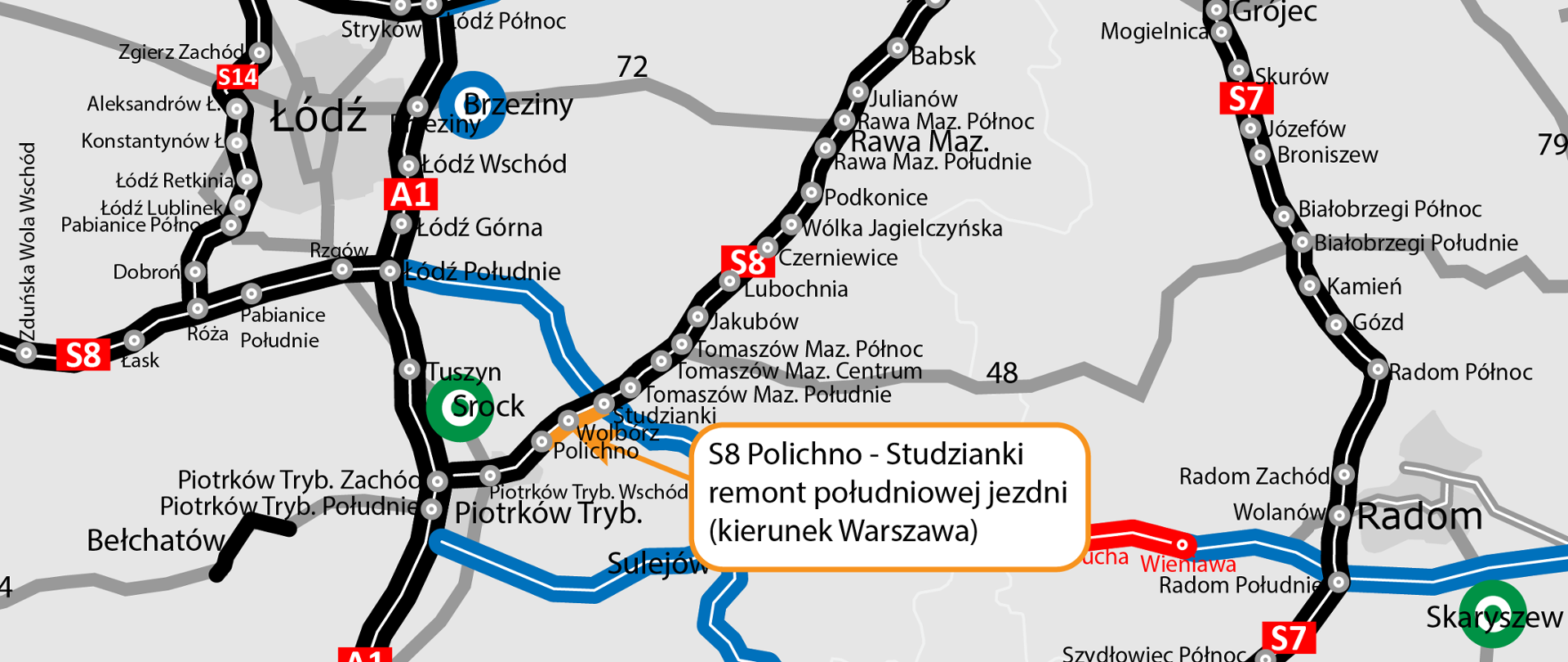 Wybierz województwo, aby sprawdzić stan dróg w budowie, aktualne warunki drogowe oraz informacje o odpowiednim oddziale GDDKiA.