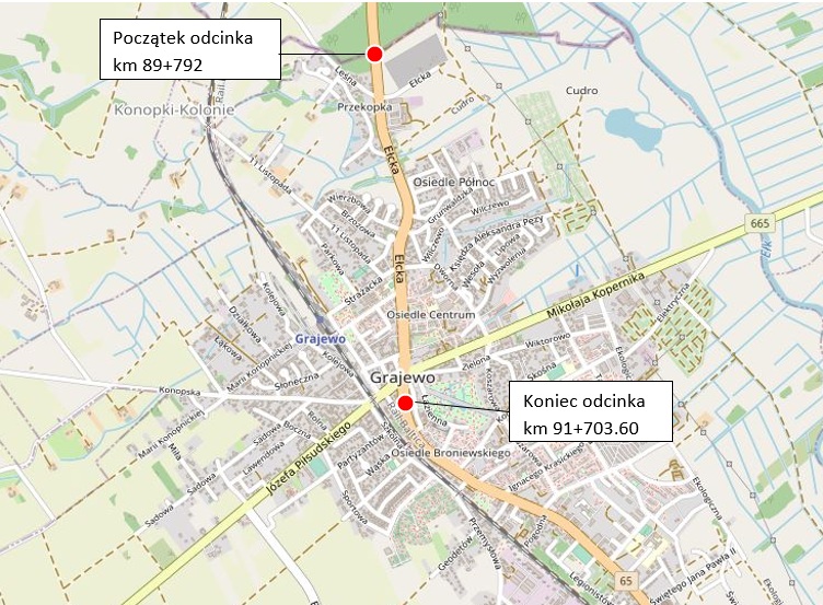 Wojewoda Podlaski wydał pozwolenie na rozbudowę drogi krajowej nr 65 w Grajewie. Decyzja o zezwoleniu na realizację inwestycji drogowej (ZRID) dotyczy odcinka od skrzyżowania z drogą wojewódzką nr 665 (dawniej drogą krajową nr 61) do granicy z województwem warmińsko-mazurskim.