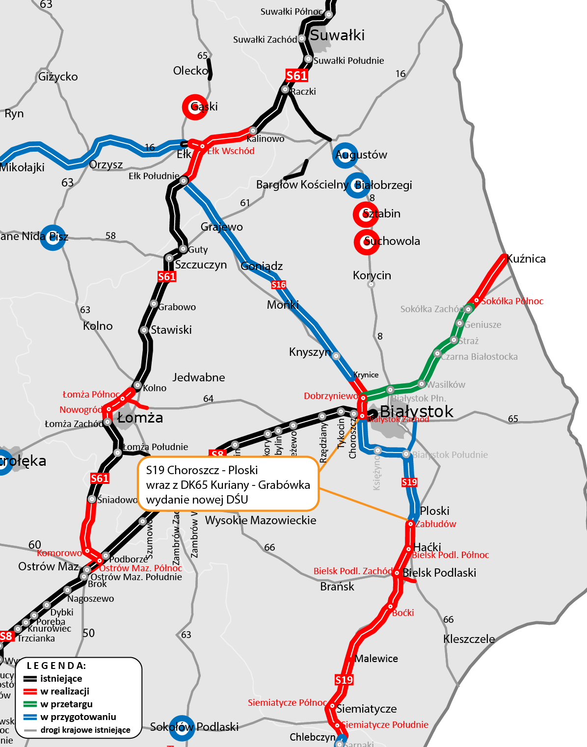 Regionalny Dyrektor Ochrony Środowiska w Białymstoku ustalił środowiskowe uwarunkowania dla budowy drogi ekspresowej S19 Choroszcz - Ploski wraz z budową DK65 Kudrycze - Kuriany - Grabówka.