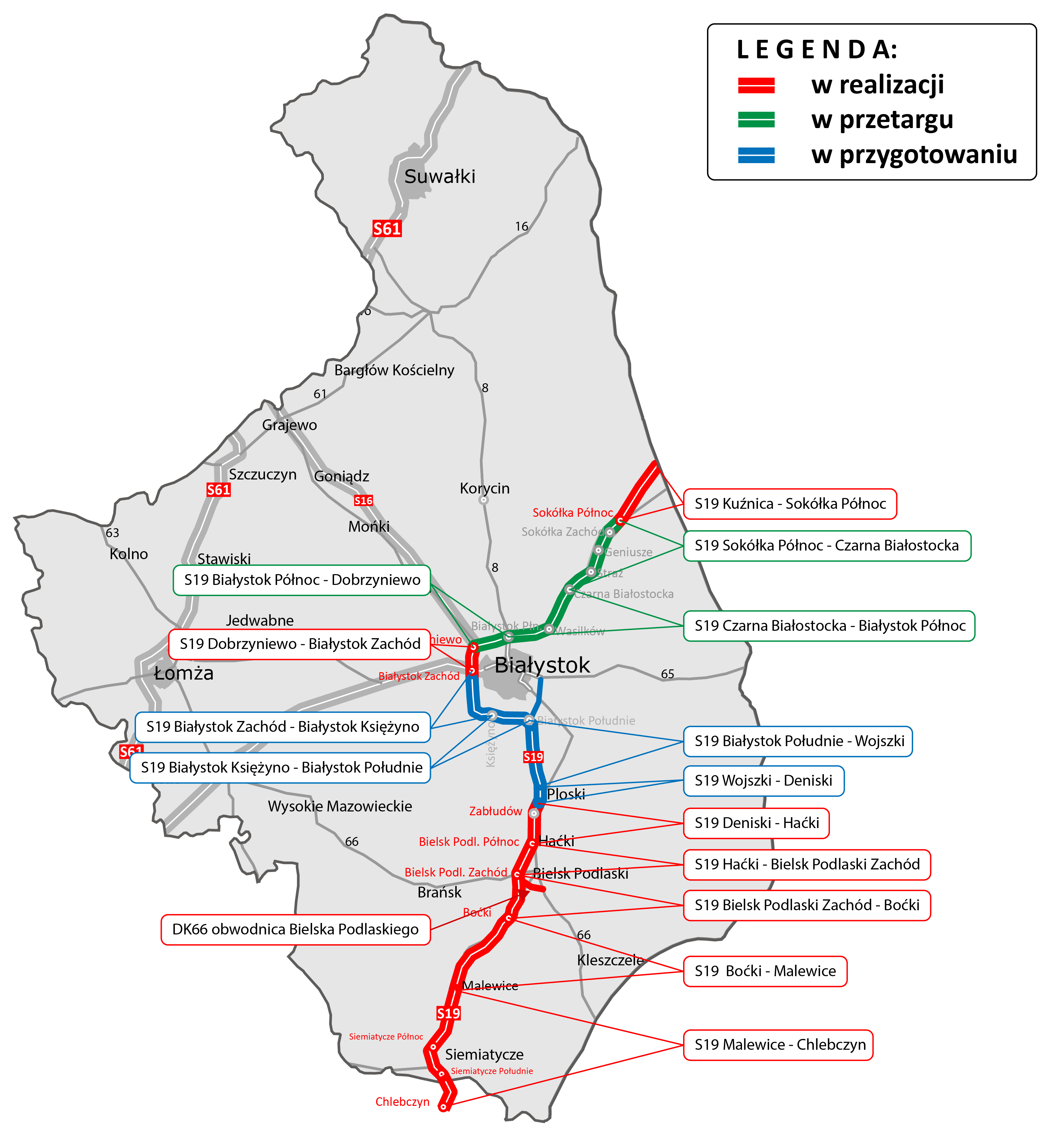 • Bielsk Podlaski Zachód - Boćki, ok. 12,2 km, w realizacji - oczekujemy na ZRID;
