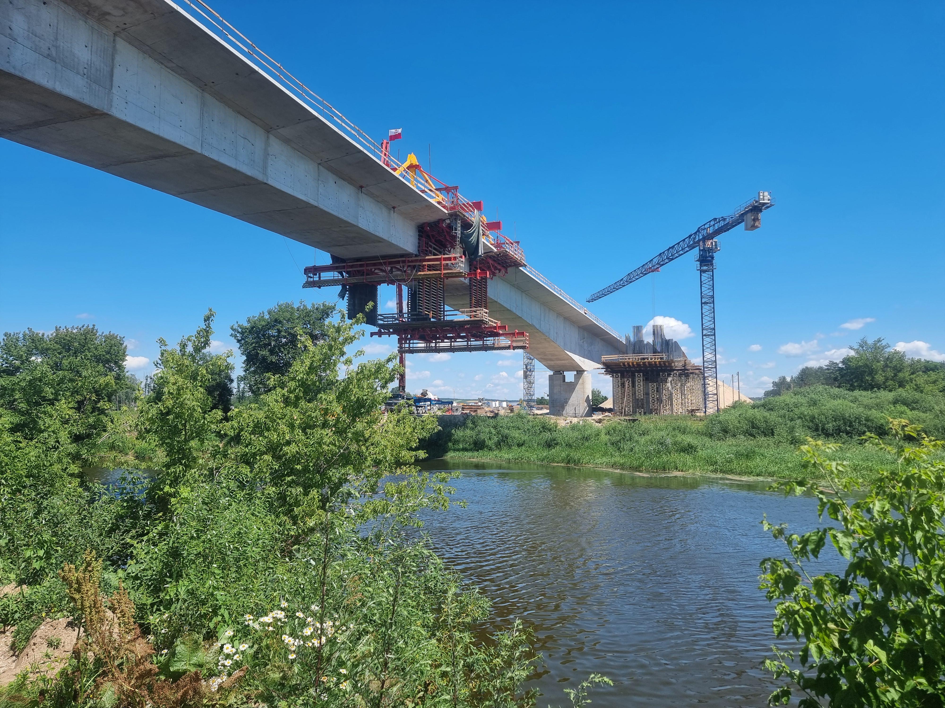 * metodą nawisową – w ten sposób powstaje tzw. część nurtowa mostu o długości 458 m, która właśnie została połączona,