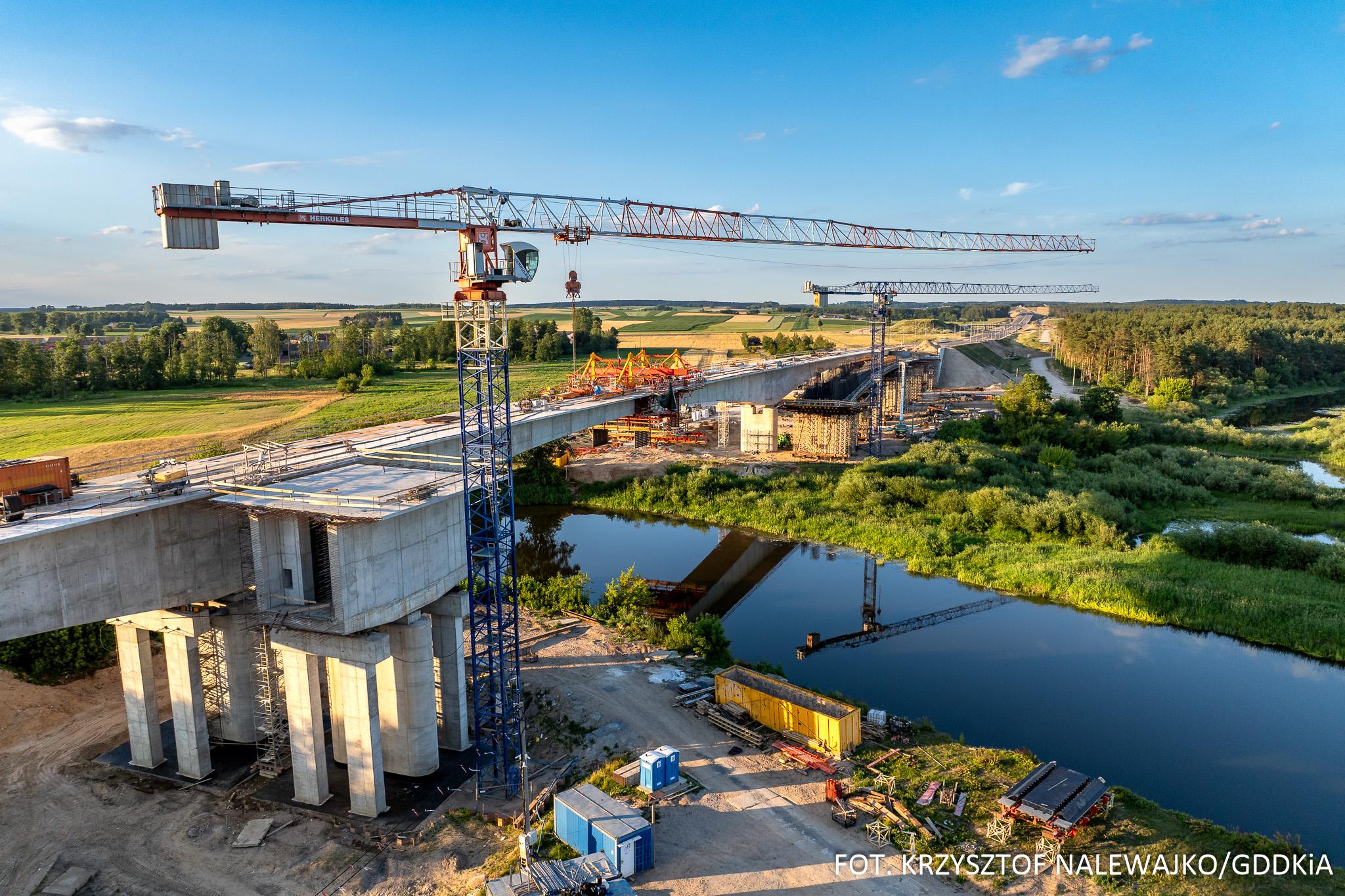 Ruszyło betonowanie połączenia segmentów nawisowych mostu nad nurtem Narwi na budowanej obwodnicy Łomży. Tym samym oba brzegi rzeki zostały połączone obiektem o długości 1205 m, na razie w ciągu zachodniej jezdni drogi ekspresowej S61, która ma być udostępniona kierowcom do końca września bieżącego roku.
