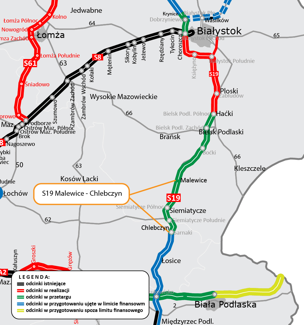 Wybraliśmy najkorzystniejszą ofertę w przetargu na zaprojektowanie i budowę drogi ekspresowej S19 na odcinku Malewice - Chlebczyn o długości 25 km. Ponownie jest to oferta firmy Kolin İnşaat Turizm Sanayi ve Ticaret, opiewająca na kwotę 665,21 mln zł.