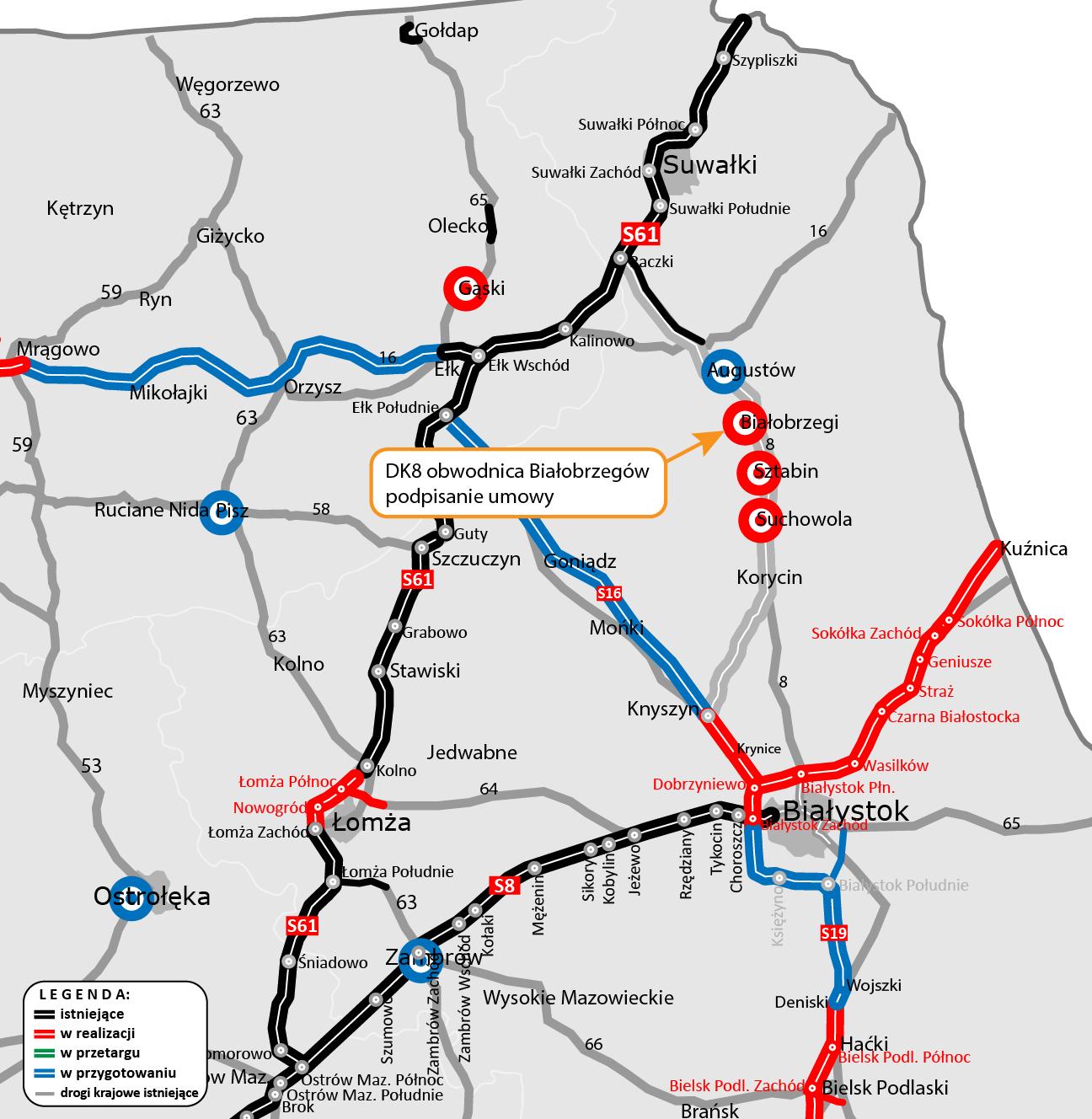 22 lutego br. złożyliśmy wniosek o decyzję środowiskową dla obwodnicy Augustowa w ciągu DK16, a obwodnica Zambrowa w ciągu DK63/66 jest na etapie prac przygotowawczych.