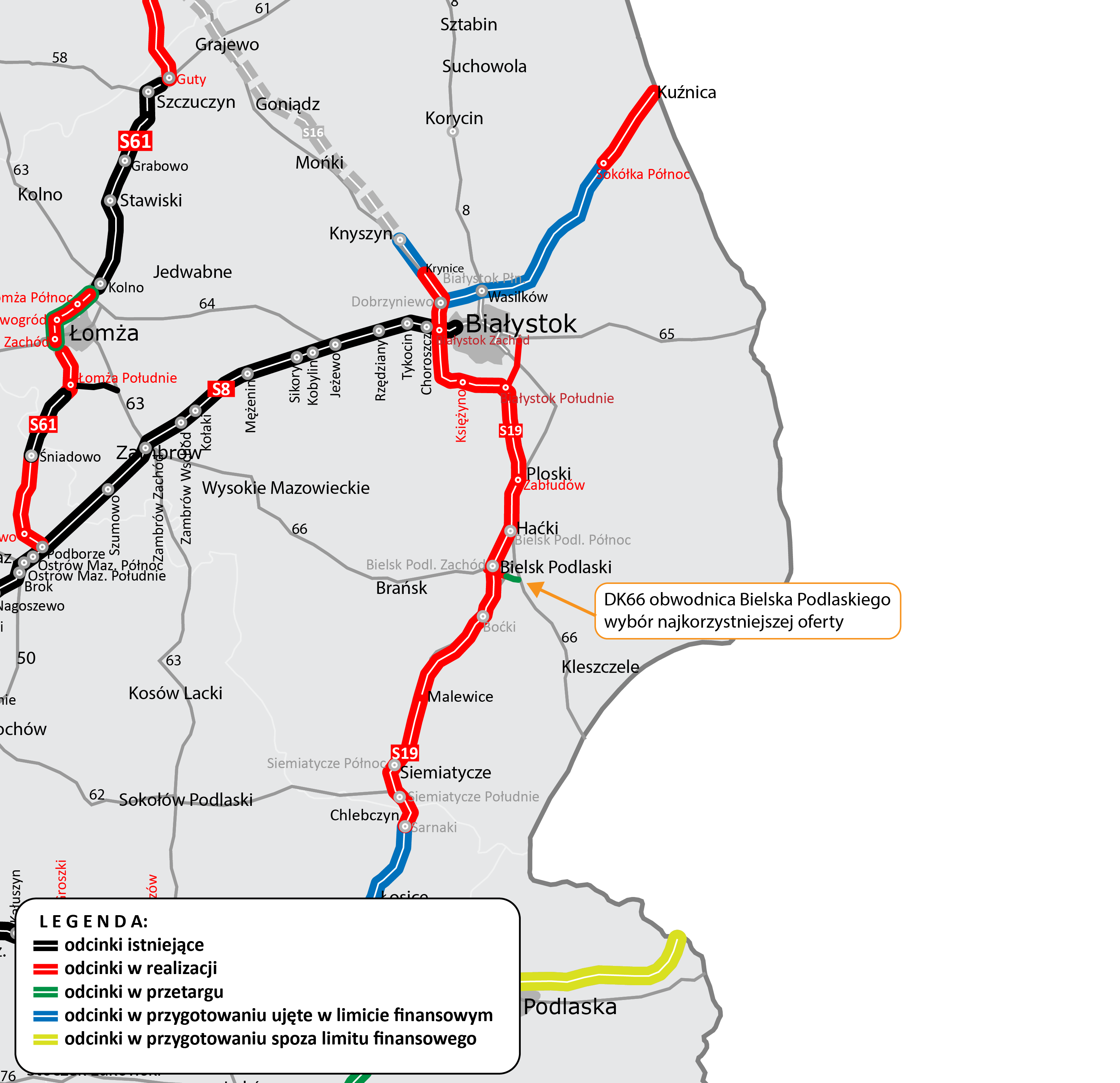 Na osi północ-południe ruch tranzytowy wyprowadzony zostanie z Bielska Podlaskiego dzięki dwujezdniowej drodze ekspresowej S19, która ominie miasto od zachodu. Z kolei planowana południowa obwodnica Bielska Podlaskiego ma wyprowadzic z niego ruch na osi wschód - zachód.