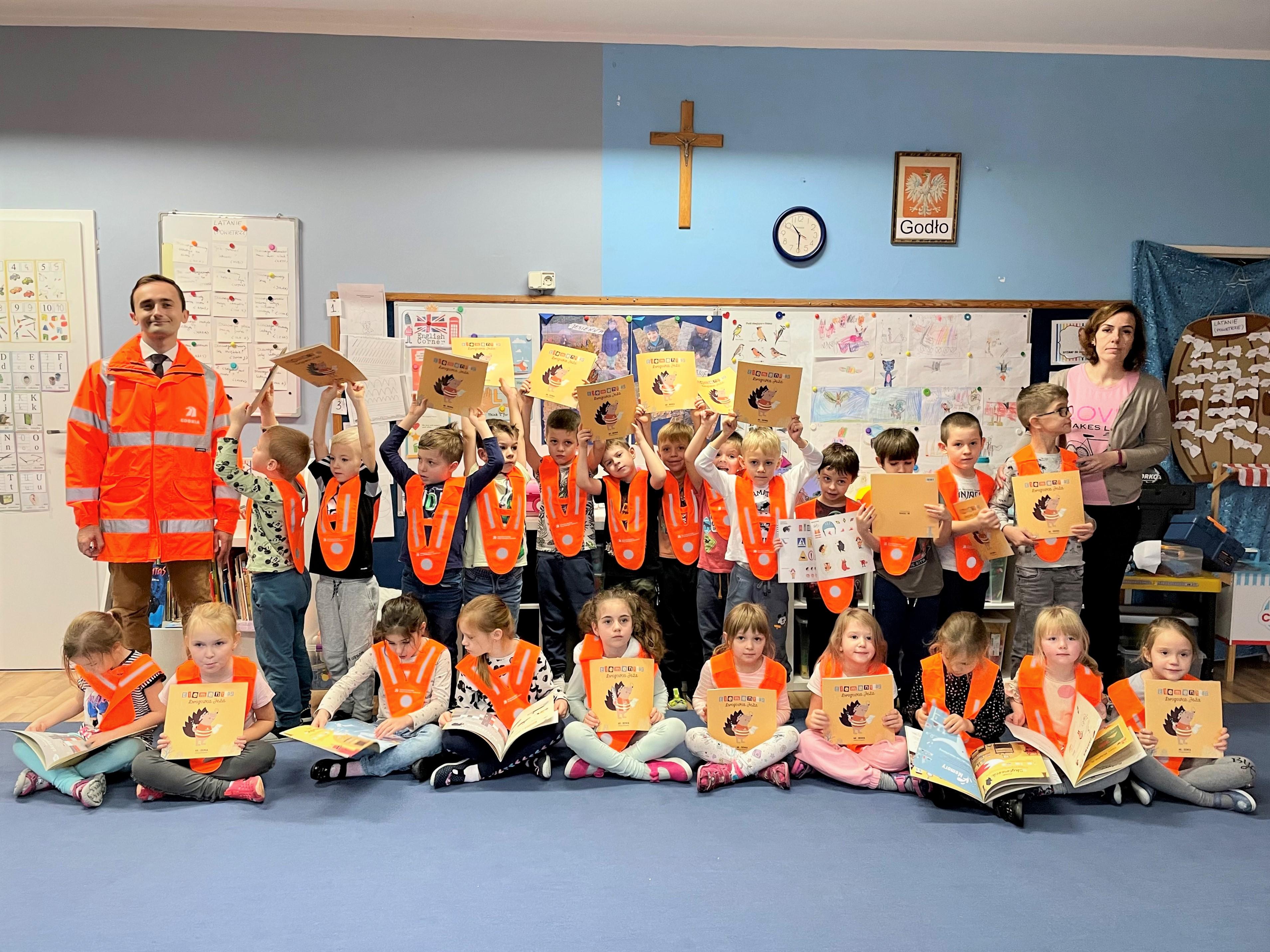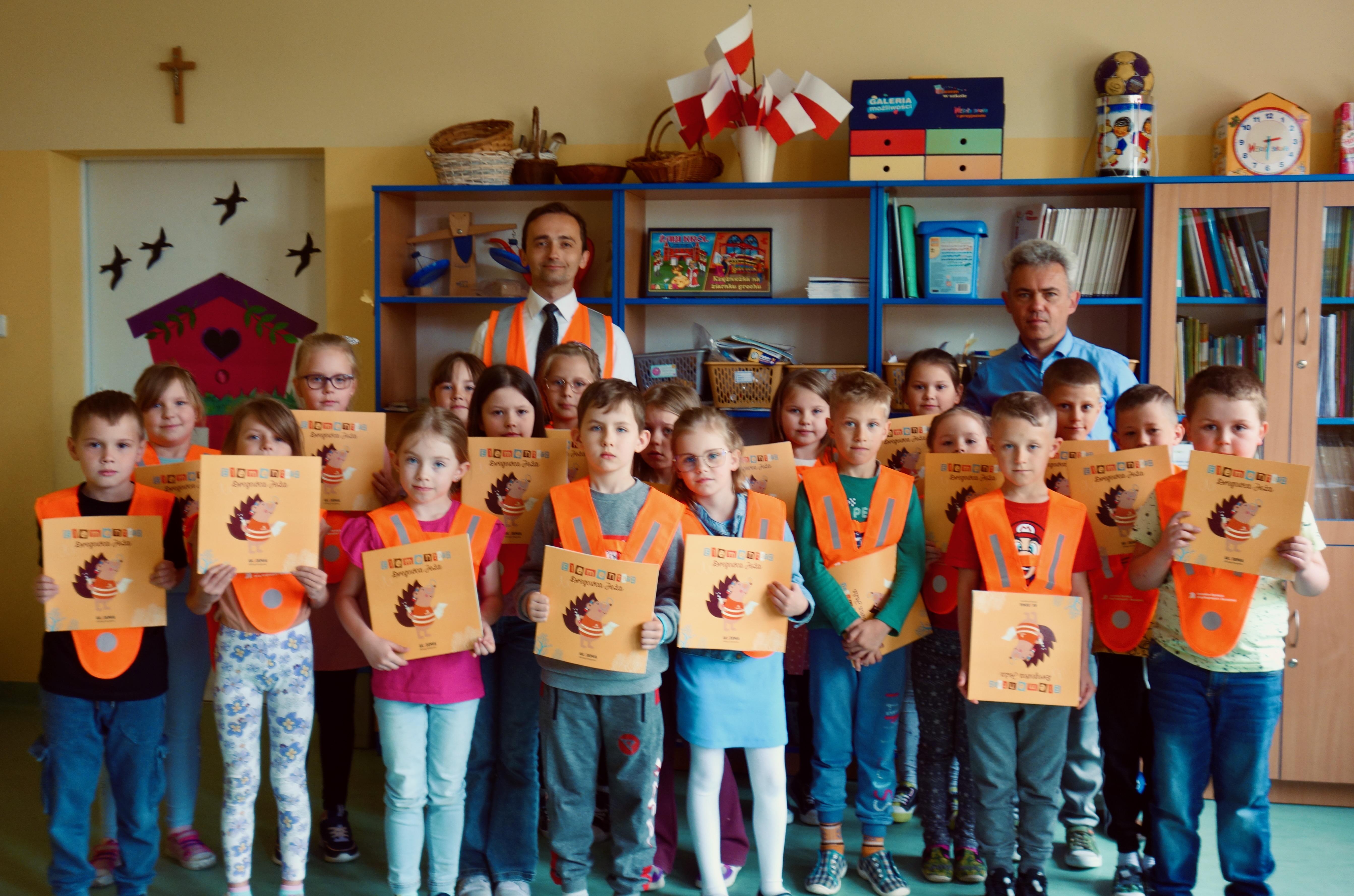 Podczas spotkań omawialiśmy zasady bezpiecznego przemieszczenia się po drogach, przechodzenia przez jezdnię oraz wskazywaliśmy jak ważne jest noszenie elementów odblaskowych. Zapoznaliśmy dzieci z numerem alarmowanym 112, numerem Informacji Drogowej - 19 111 oraz z zasadami postępowania, gdy jest się świadkiem zdarzenia drogowego. Rozmawialiśmy też o akcji „Droga to nie wysypisko” oraz pracy Laboratorium Drogowego. Dzieci z wielką chęcią brały udział w zajęciach, zadawały pytania i przytaczały własne przykłady w temacie omawianych zagadnień. Na koniec otrzymywały elementy odblaskowe, Niemapę Polski oraz Elementarze Drogowca Jeża.