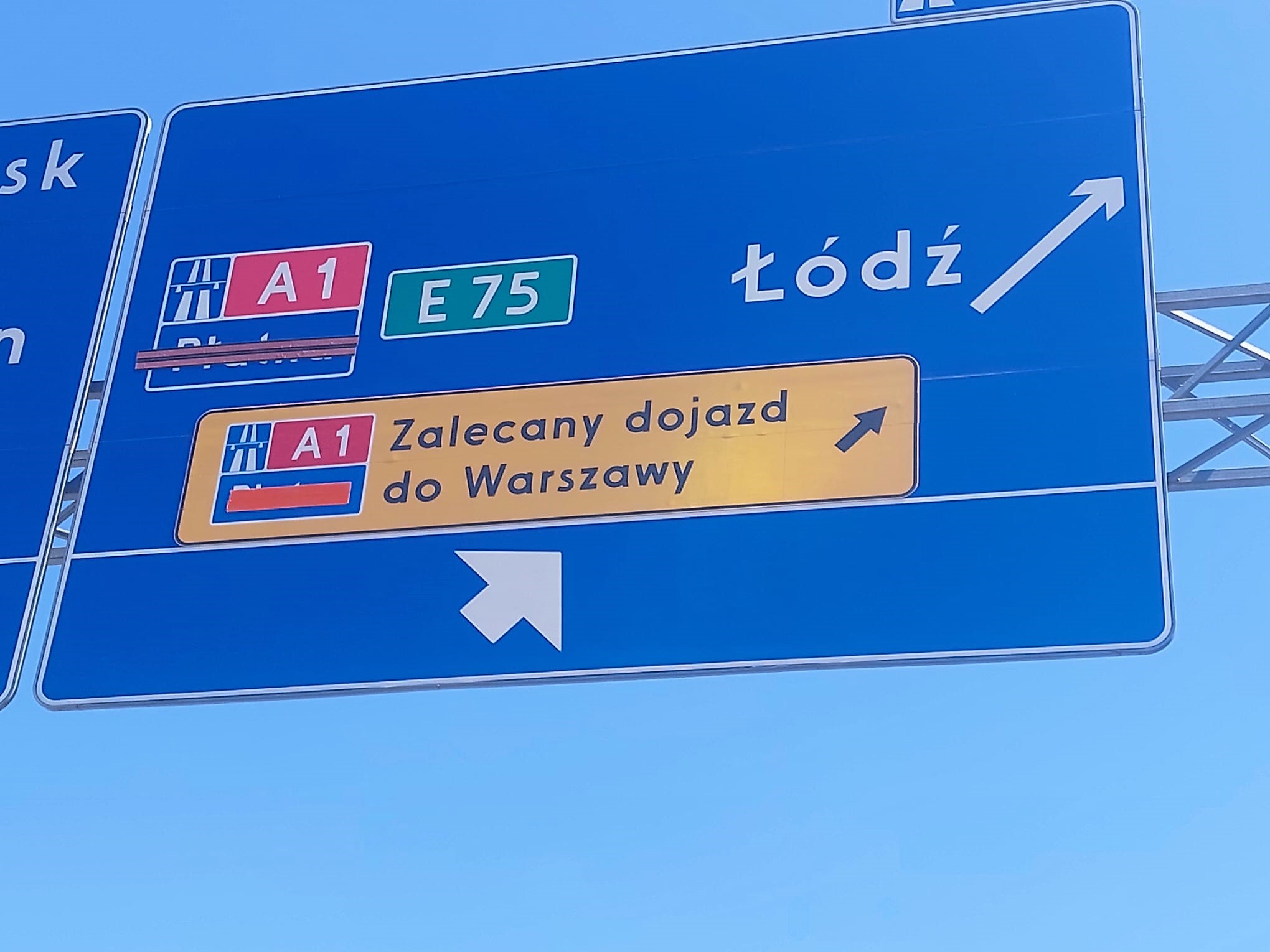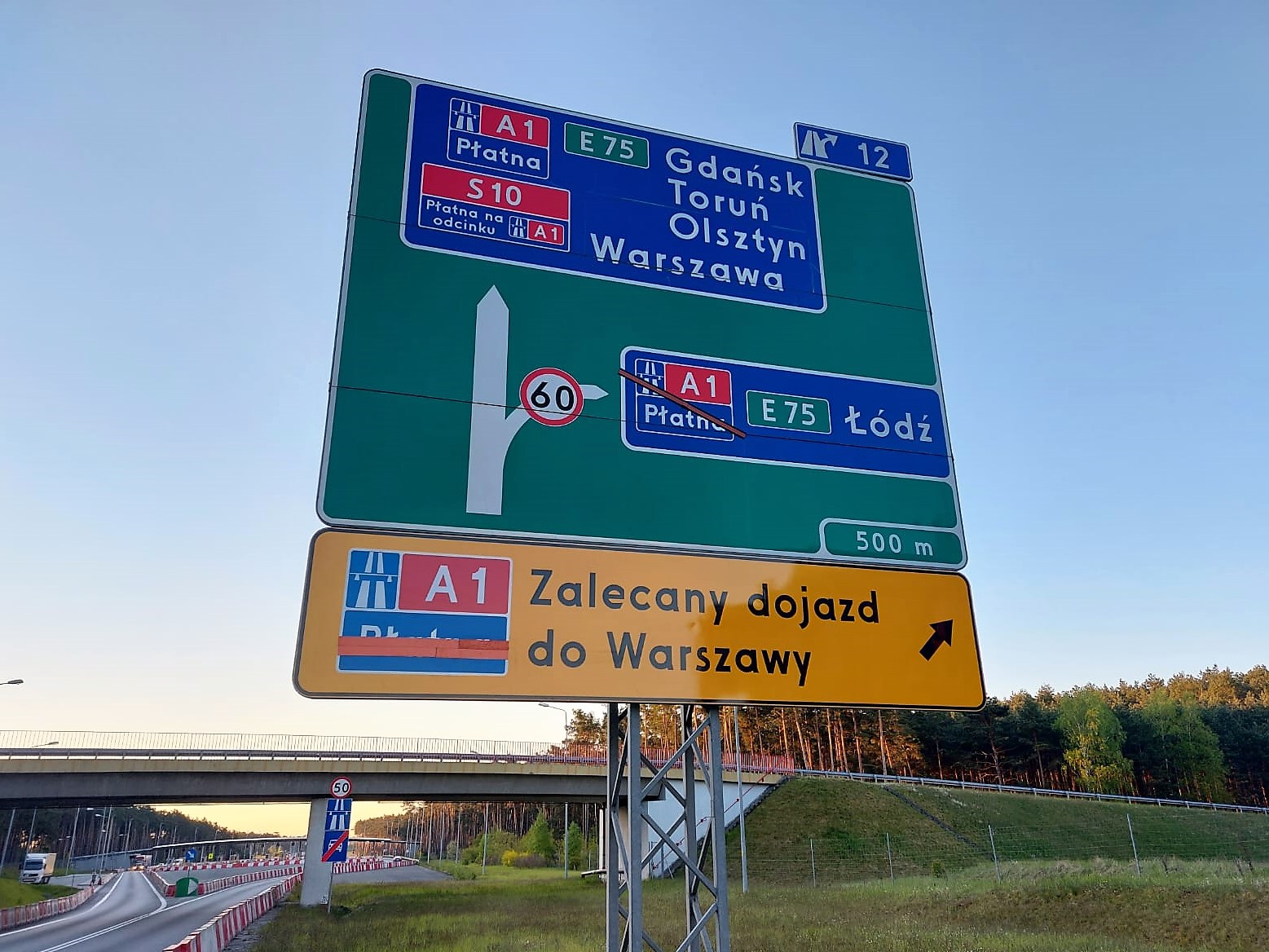 W związku z sygnałami kierowców dokonaliśmy zmiany oznakowania przed zjazdem z S10 – południowa obwodnica Torunia na autostradę A1. Istniejące oznakowanie kierunkowe, zgodne z mapą kierunkową Polski, nadal wskazuje drogę do Warszawy kilkukilometrowym płatnym odcinkiem A1 i drogą krajową nr 10. Niemniej jednak nowe dodatkowe oznakowanie kierunkowe daje użytkownikom drogi możliwość wyboru dogodniejszego dojazdu do Warszawy w kierunku Łodzi.