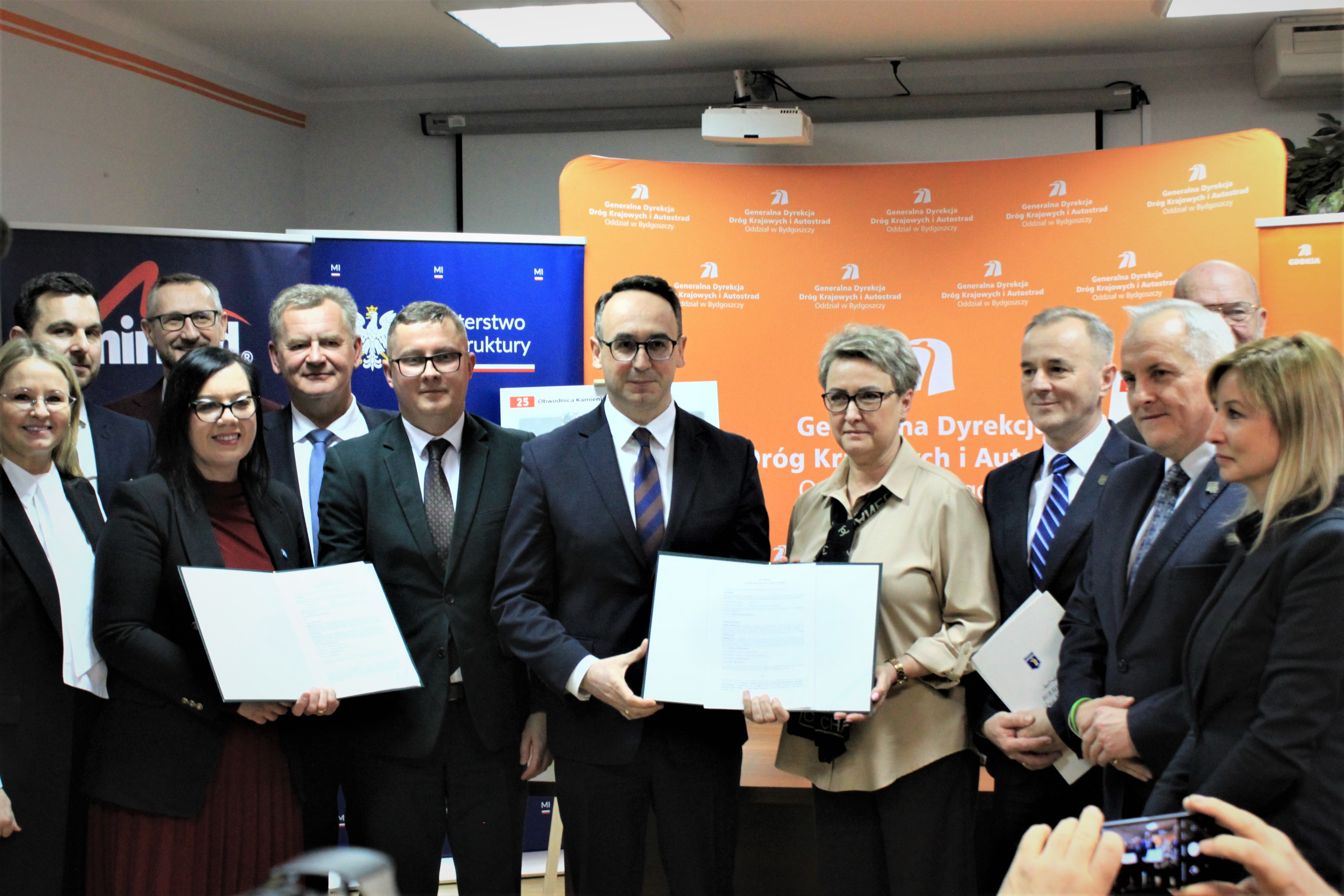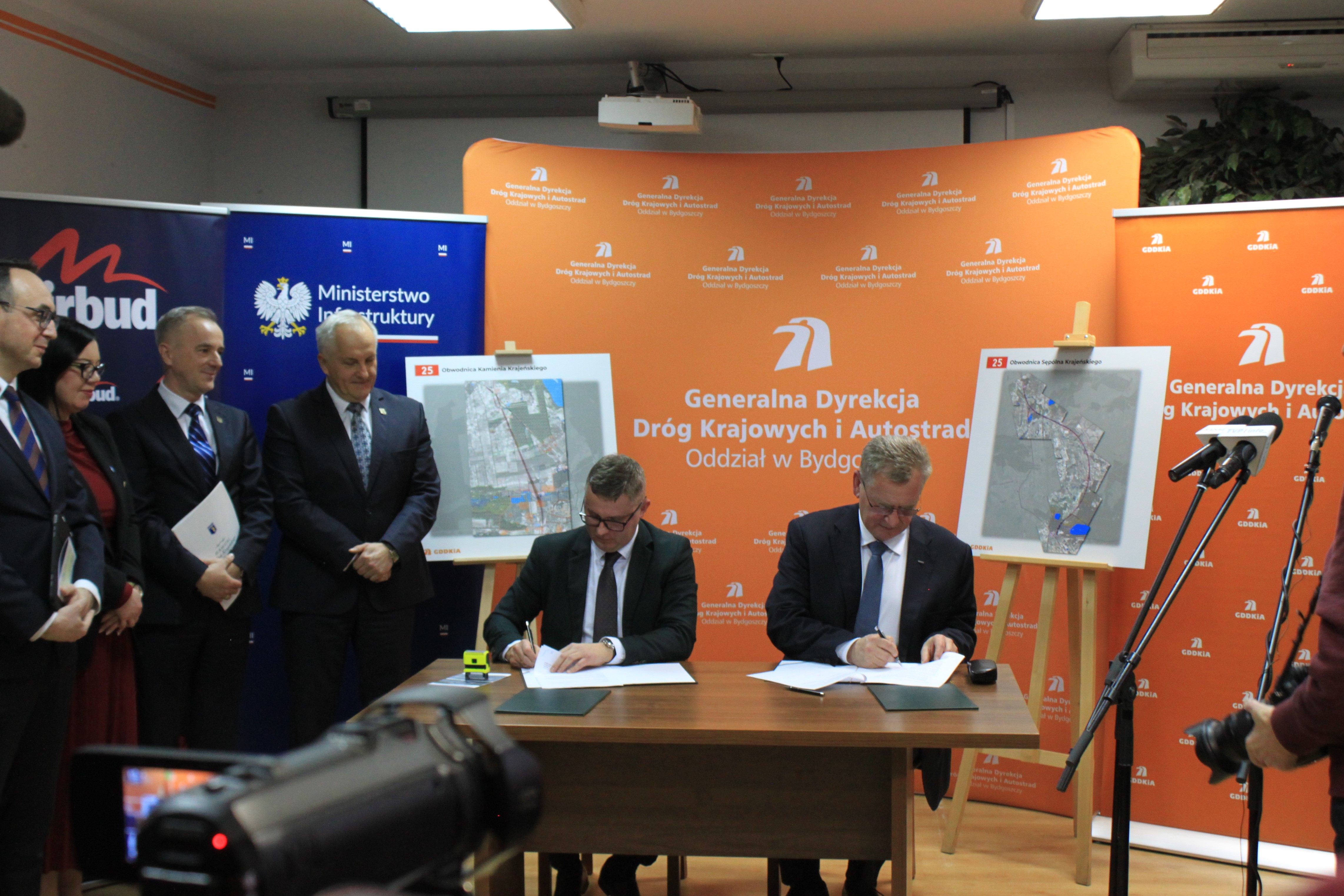 Podpisaliśmy umowy na projekt i budowę obwodnic Kamienia Krajeńskiego i Sępólna Krajeńskiego w ciągu drogi krajowej nr 25. Wykonawcą obu obwodnic o łącznej długości 9 km zostało konsorcjum firm Kobylarnia (lider) i Mirbud.