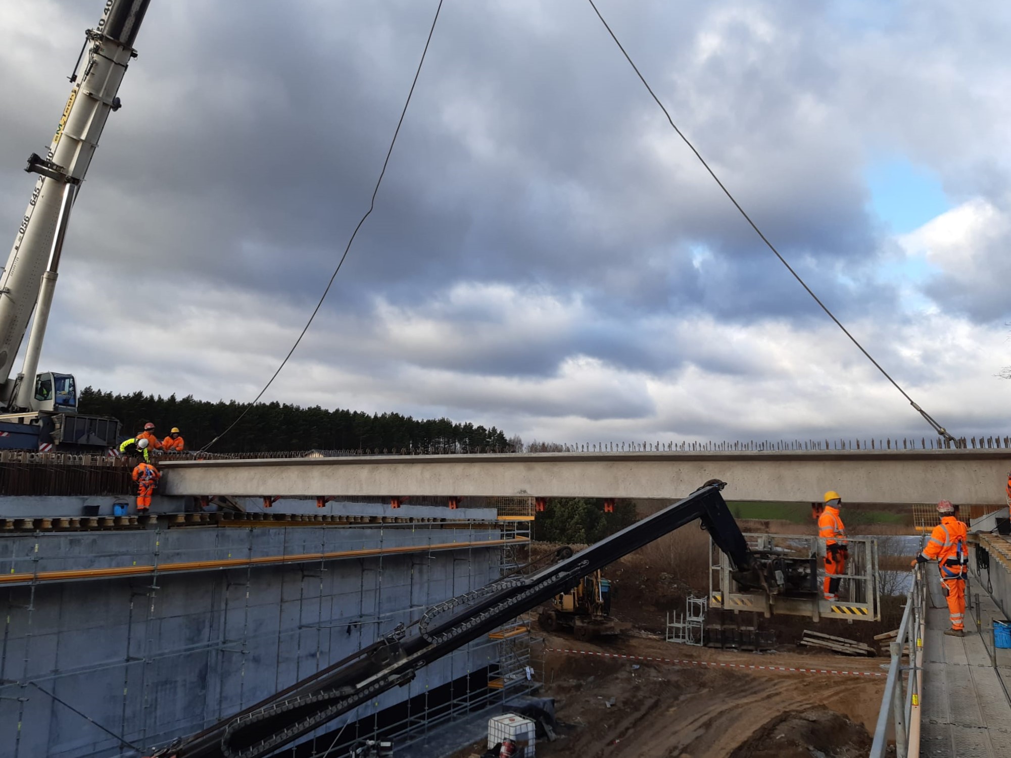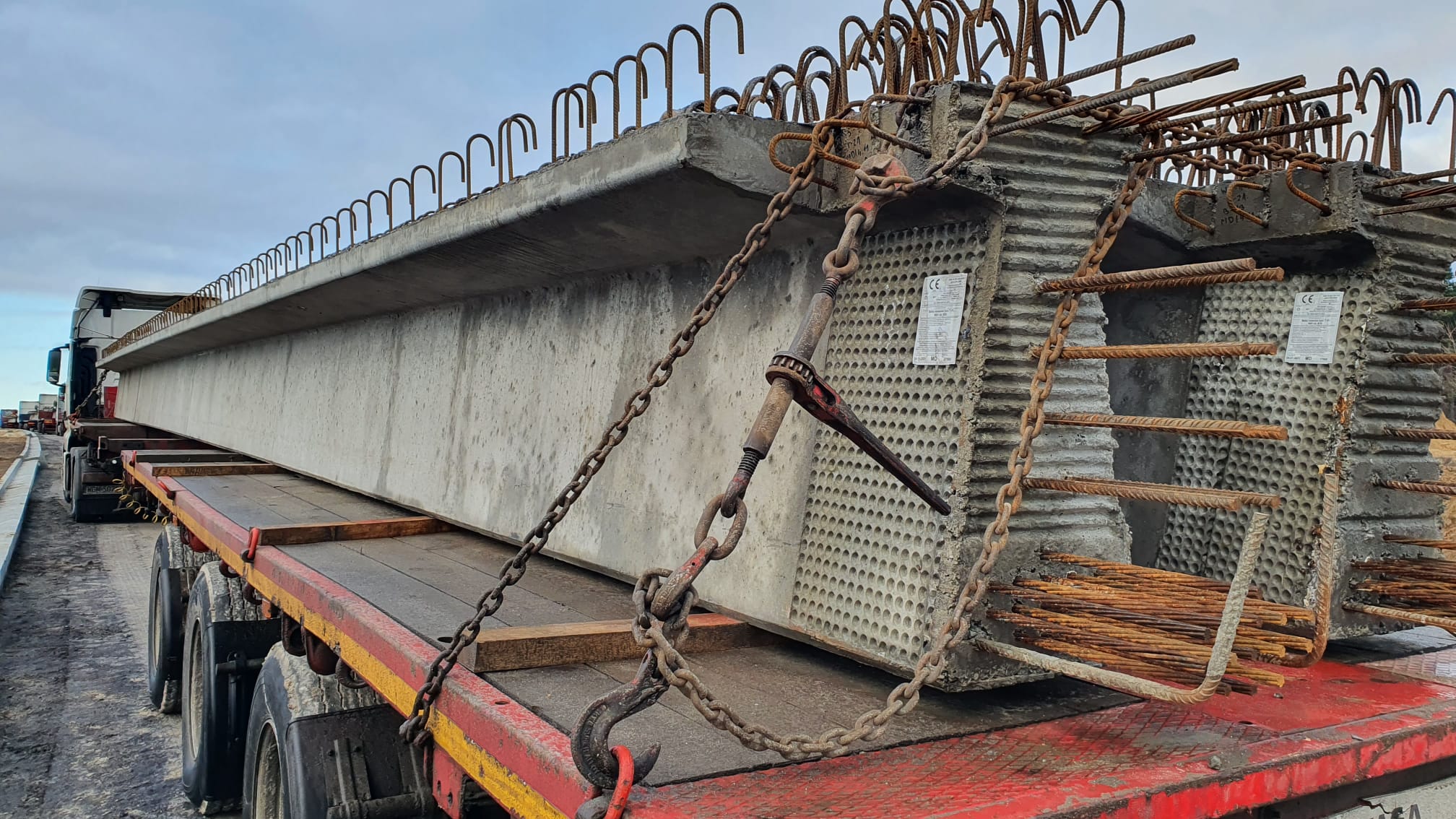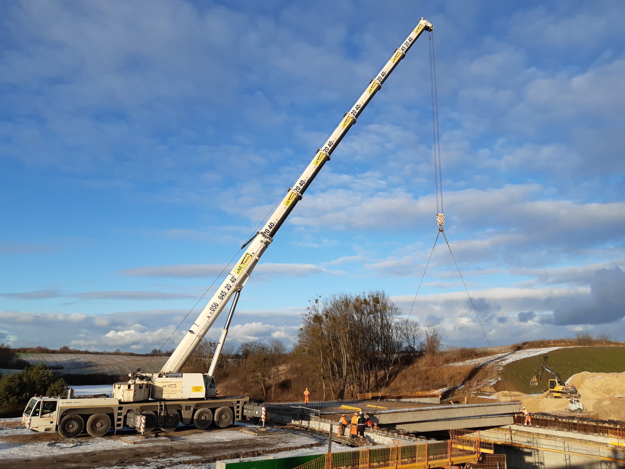 Belki zostały wyprodukowane w zakładach prefabrykacji Gralbet w miejscowości Uzdowo/k. Działdowa. Do ich montażu używany jest żuraw samochodowy Terex Demag AC 250-1, ustawiony na przygotowanej wcześniej platformie roboczej. Łącznie zamontowane zostaną 34 belki. Na koniec przewidziano kontrolę geodezyjną oraz montaż zabezpieczeń BHP, niezbędnych do dalszych prac. W zależności od sprzyjającej pogody w okresie poświątecznym, Wykonawca przystąpi do deskowania i zbrojenia ustroju nośnego.