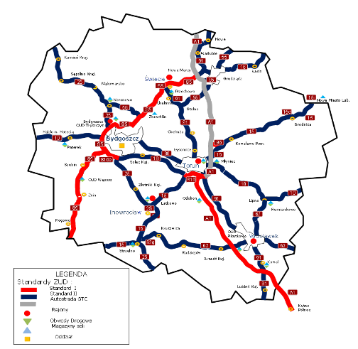 Prace ściśle związane z zimowym utrzymaniem dróg (ZUD), w szczególności odśnieżanie i usuwanie śliskości, prowadzone są w trybie 24-godzinnym, 7 dni w tygodniu. Ich realizacja odbywa się przez wykonawców wyłonionych w drodze przetargów, z którymi GDDKiA zawarła umowy na utrzymanie całej sieci. Działaniami na drogach woj. kujawsko-pomorskiego kieruje pięć Rejonów oraz 15 Obwodów Drogowych (OD), w tym jeden Obwód Utrzymania Autostrady (OUA). Do ich dyspozycji jest 17 magazynów, w których mamy zgromadzone ponad 20 tys. ton soli drogowej. Z czego aż do 9000 ton może pomieścić nasz największy magazyn znajdujący się przy A1 w Pikutkowie.
