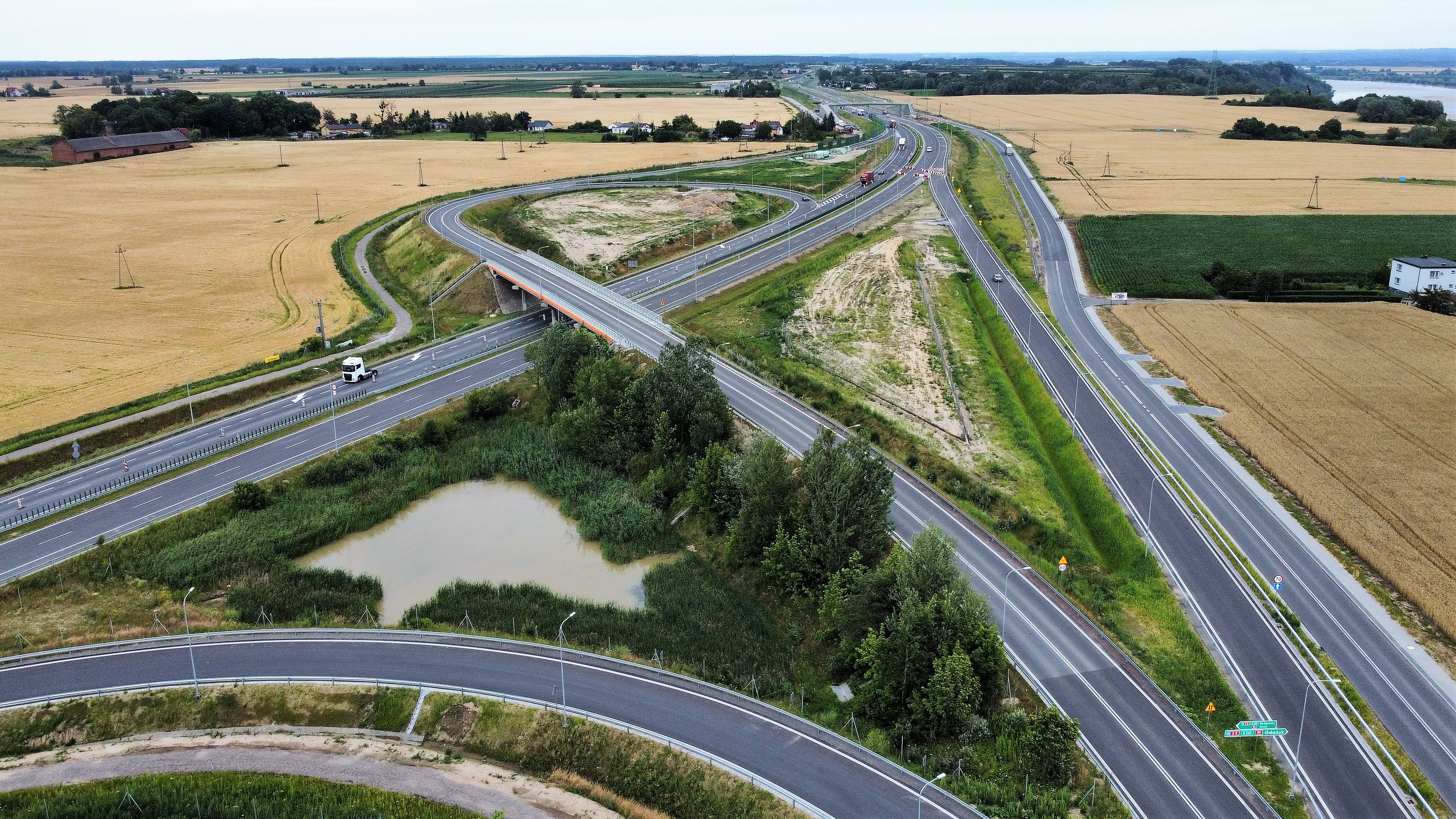 Budowa drogi ekspresowej S5, o łącznej długości 128 kilometrów, została podzielona na siedem odcinków realizacyjnych, z których pięć oddaliśmy do ruchu. Na udostępnionym jesienią ub. roku 10-kilometrowym odcinku Białe Błota - Szubin trwają prace wykończeniowe. Zaawansowanie rzeczowe na koniec czerwca sięga 98 proc., a do końca wakacji planujemy zdjęcie ograniczenia prędkości do 80 km/h na trasie głównej. Prace we wszystkich branżach trwają na dwóch odcinkach S5, z Nowych Marz do Dworzyska (węzeł Świecie Południe) oraz z Dworzyska do Aleksandrowa (węzeł Bydgoszcz Północ).