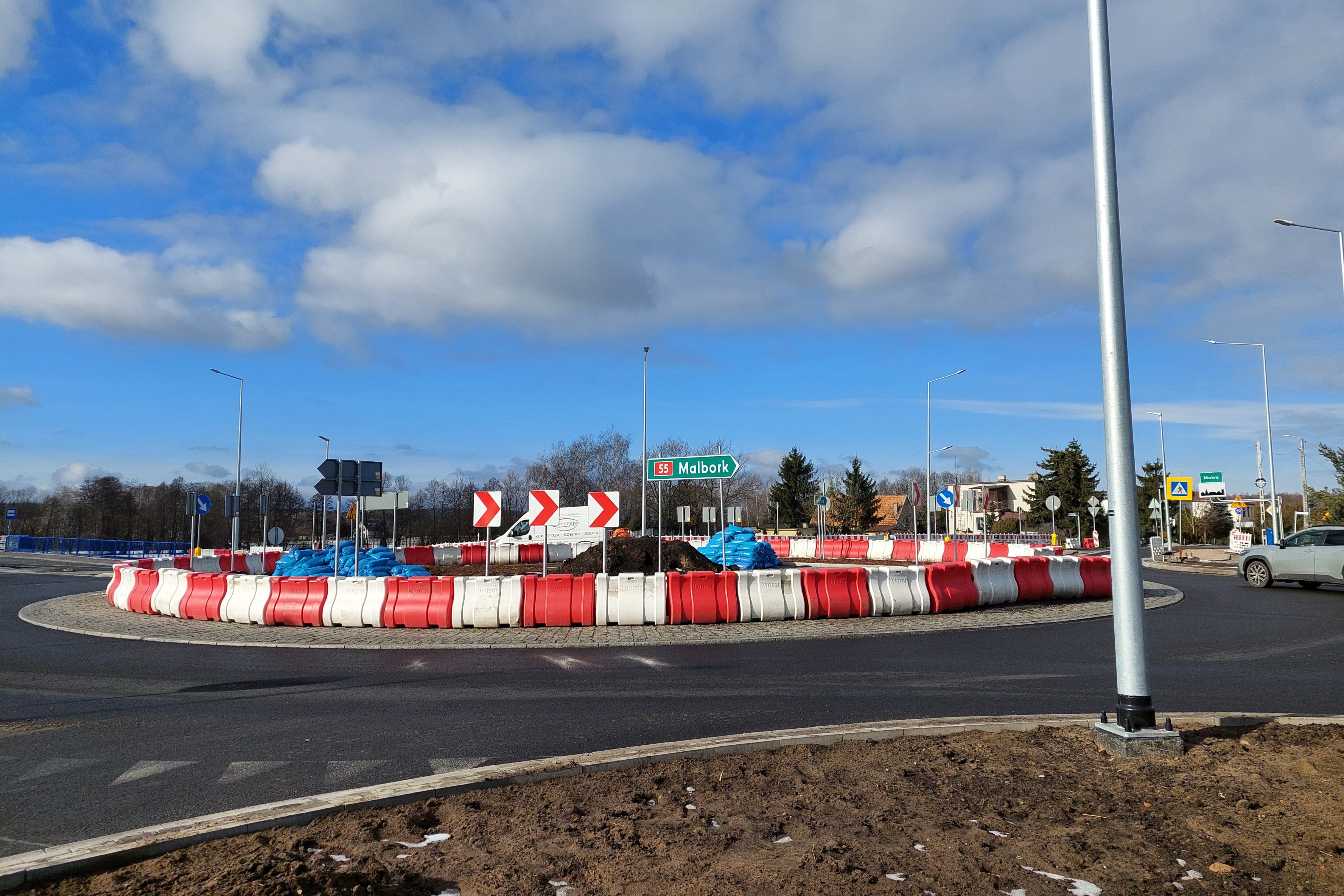 Trwa również budowa ronda na DK55 w miejscowości Mokre niedaleko Grudziądza. Inwestycja za ponad 11 mln zł obejmuje rondo wraz z dojazdami i zatokami autobusowymi. Powstają też chodniki, mury oporowe oraz nowe oświetlenie. Inwestycja łączy się ze zbudowaną wcześniej ścieżką pieszo-rowerową Grudziądz - Mokre i poprawi bezpieczeństwo w sąsiedztwie pobliskiej szkoły podstawowej. Zaawansowanie prac wynosi 87 proc.