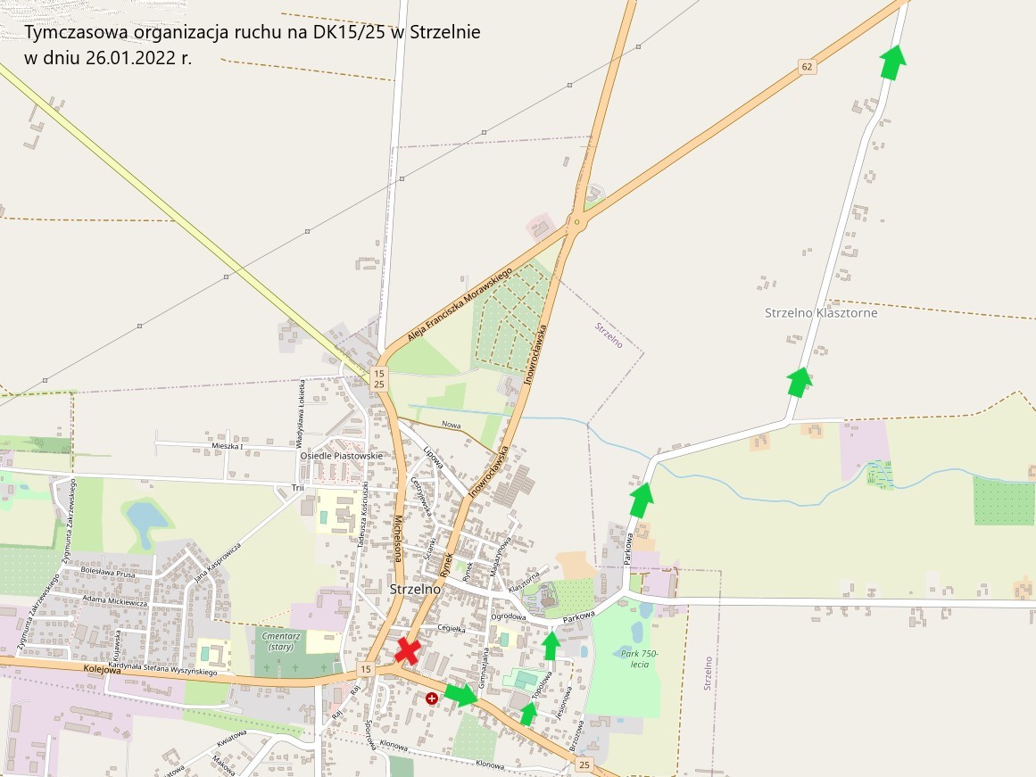 Jutro tj. 26 stycznia 2022 r. nastąpi zamknięcie ul. Św. Ducha w Strzelnie w ciągu drogi krajowej nr 15 na odc. Rynek – ul. Kolejowa. Powodem zamknięcia drogi jest konieczność przeprowadzenia pilnej naprawy sieci gazowej pod jezdnią drogi krajowej nr 15. Przewidywany okres zamknięcia drogi to 1 dzień.