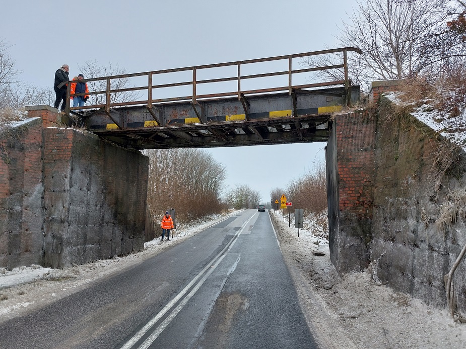 Uszkodzenie wiaduktu kolejowego na DK25 w Obodowie – droga zamknięta