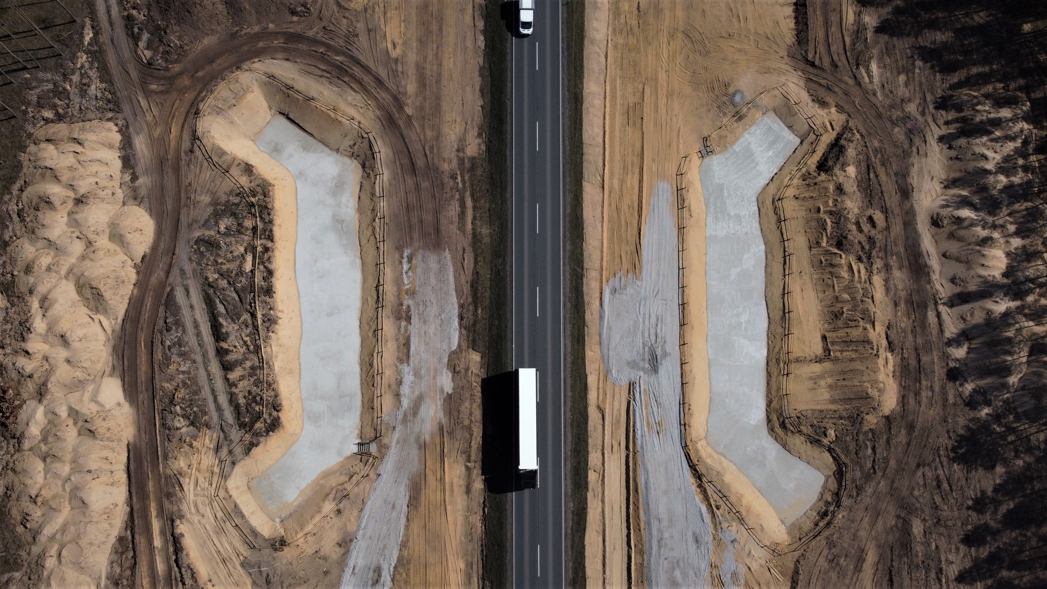 Od 10 kwietnia obowiązuje ograniczenie prędkości do 60 km/h i zakaz wyprzedzania na DK25 w miejscu wyjazdów z placu budowy. Usuwanie humusu z pasa DK25 sięga już do miejsca planowanego węzła Brzoza. Widać również zarys węzła Zielona.