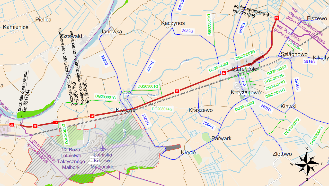 Mapa rozbudowywanego odcinka DK22Orientacja_DK22_Królewo_-_gr_woj.png 0.48MB