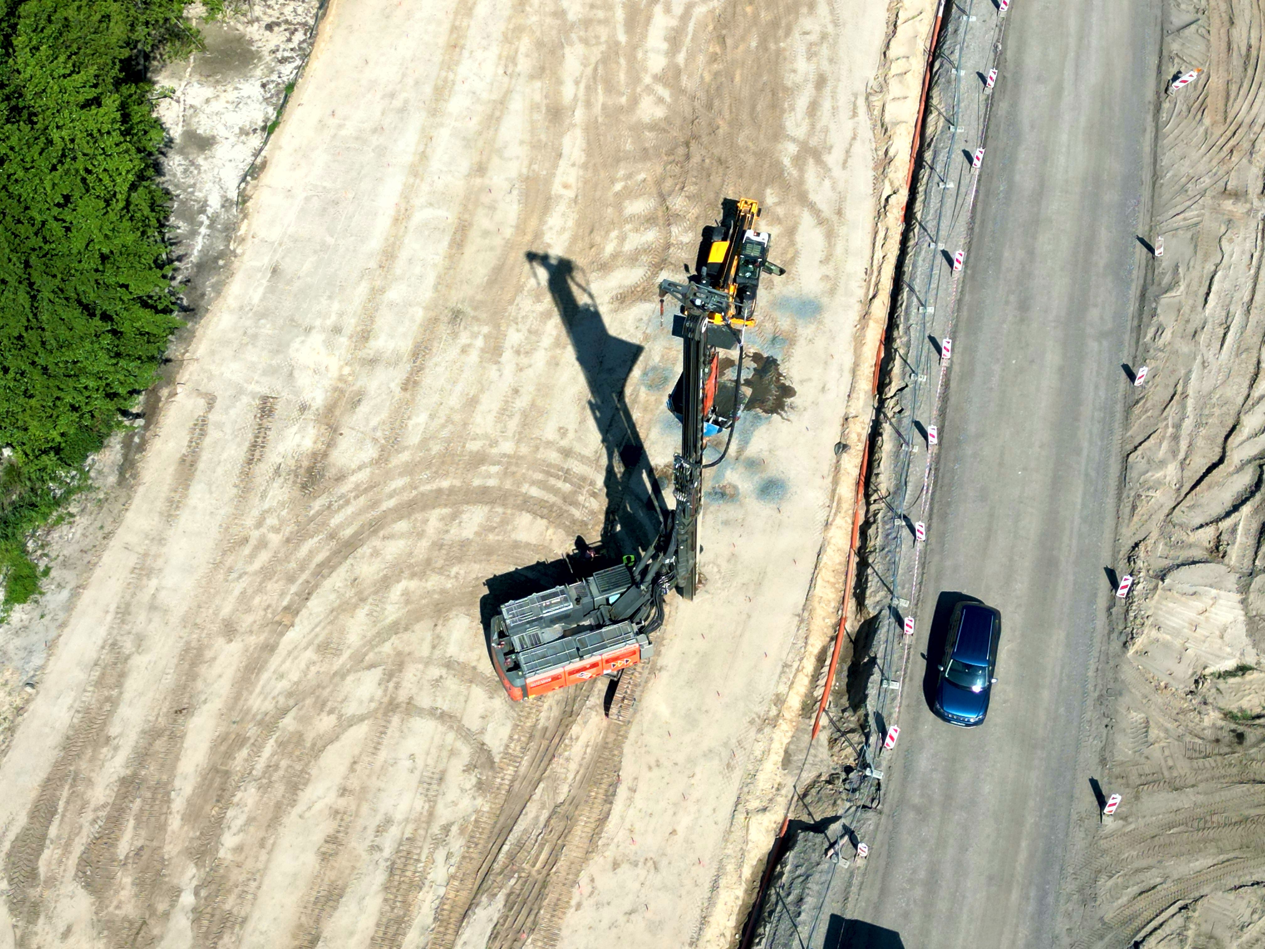 Obecnie prowadzimy intensywne prace we wszystkich branżach. Trwa montaż oznakowania pionowego, budowa ścieżki pieszo-rowerowej wzdłuż DK25, ekranów akustycznych oraz roboty brukarskie. Ponadto kończymy prace przy kanalizacji deszczowej.