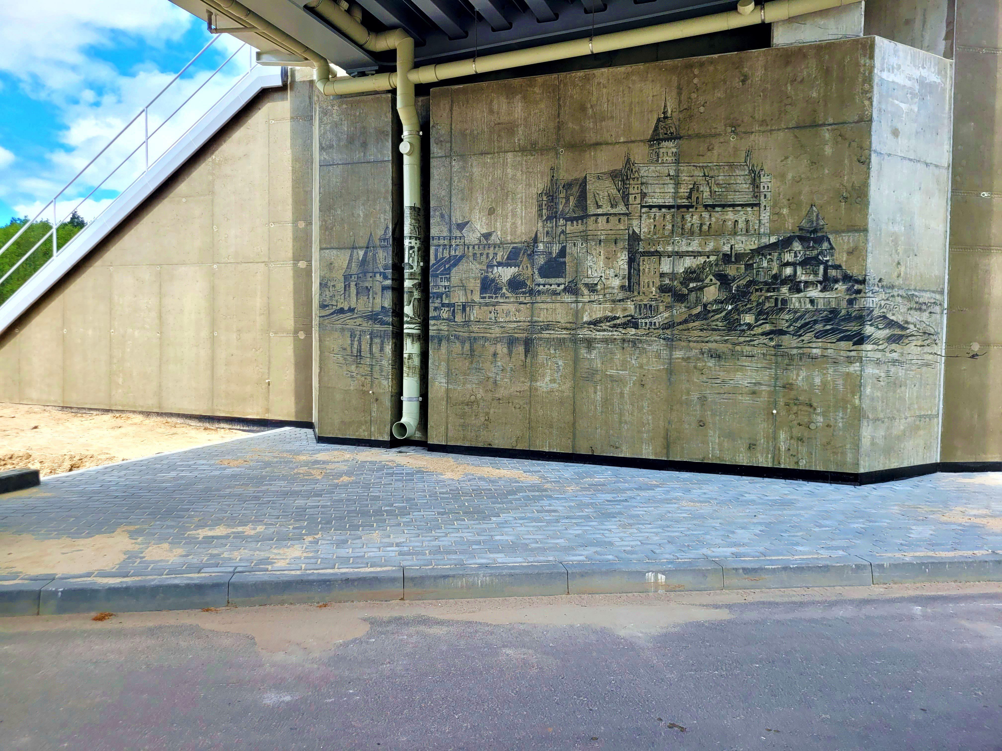 Na drugim muralu można zobaczyć zamek w Malborku, który również ma status pomnika historii i od 1997 r. jest wpisany na listę światowego dziedzictwa UNESCO. To jeden z najbardziej charakterystycznych przykładów średniowiecznej architektury w tej części Europy. Oba murale zostały zabezpieczone powłoką antygraffiti.