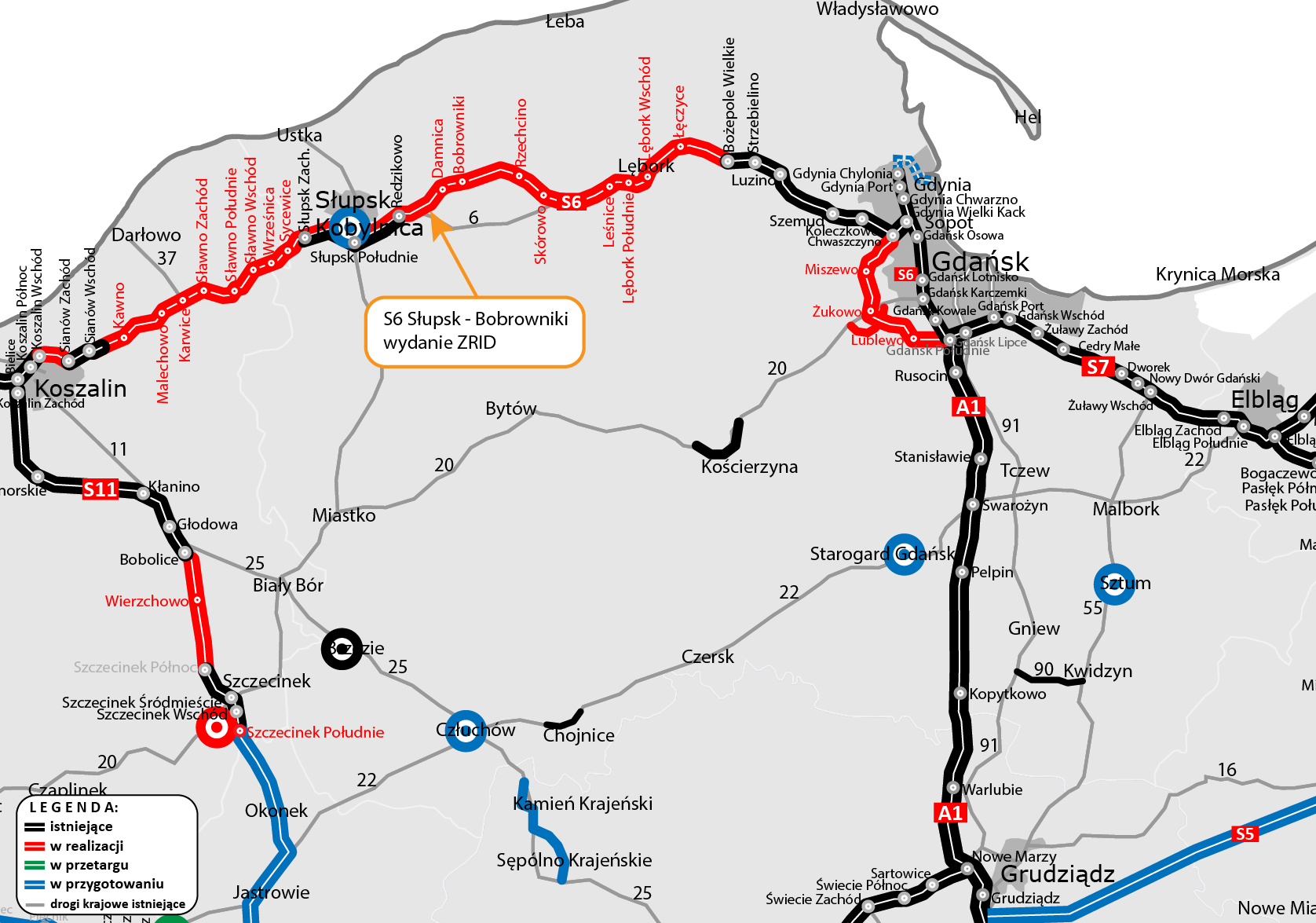 Wojewoda Pomorski wydał decyzję o zezwoleniu na realizację inwestycji drogowej (ZRID) dla drogi ekspresowej S6 od końca obwodnicy Słupska do Bobrownik. To ostatni odcinek S6 między Słupskiem a Bożepolem Wielkim z decyzją umożliwiającą wykonawcom prowadzenie prac budowlanych.