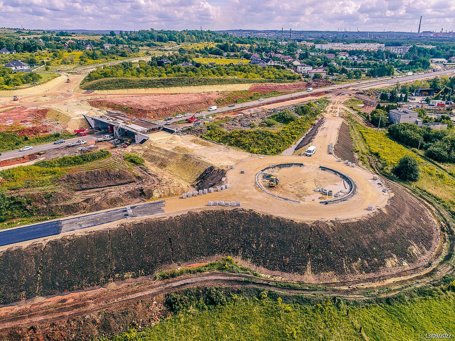 Wykonawca skupia się na realizacji prac drogowych. Wykonane zostało 60 procent nawierzchni przebudowywanej jezdni w kierunku Dąbrowy Górniczej - do warstwy wiążącej włącznie. Trwają także prace na obu węzłach (Dąbrowa Górnicza Ząbkowice, Dąbrowa Górnicza Pogoria) i drogach bocznych. Do końca roku planowane jest udostępnienie dla ruchu drogi łącznikowej pomiędzy ulicami Konstytucji i Kusocińskiego. Zakończenie tego etapu pozwoli na rozpoczęcie prac na jezdni przeciwnej (w kierunku na Podwarpie) oraz przebudowę ulicy Konstytucji na odcinku od tymczasowego ronda przy DK1 do skrzyżowania ulicy Ujejskiej i Alei Zwycięstwa.