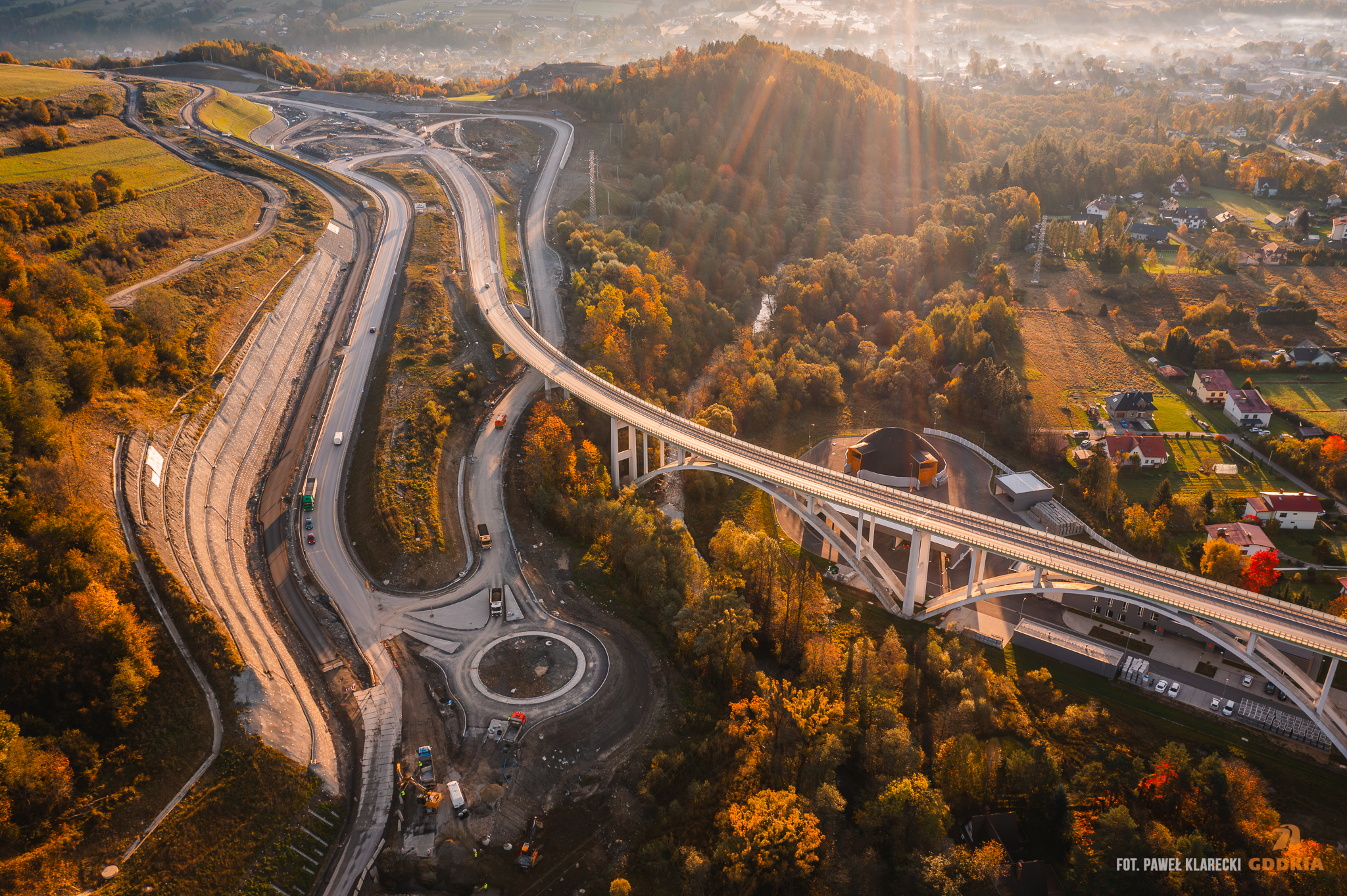 Cała inwestycja ma długość 8,5 km. Drogowy odcinek trasy głównej ma 4,95 km długości, w tym droga dwujezdniowa – 2,3 km, a droga jednojezdniowa – 2,65 km. Do 17 października ułożyliśmy 89 proc. podbudowy bitumicznej i ponad 85 proc. warstwy wiążącej. Rozpoczęliśmy także układanie warstwy ścieranej SMA, po której będzie odbywał się ruch (zaawansowanie na poziomie 42 proc.). Całość prac asfaltowych, za wyjątkiem krótkich odcinków portalowych, powinna zostać zrealizowana w tym roku (przy sprzyjających warunkach atmosferycznych).