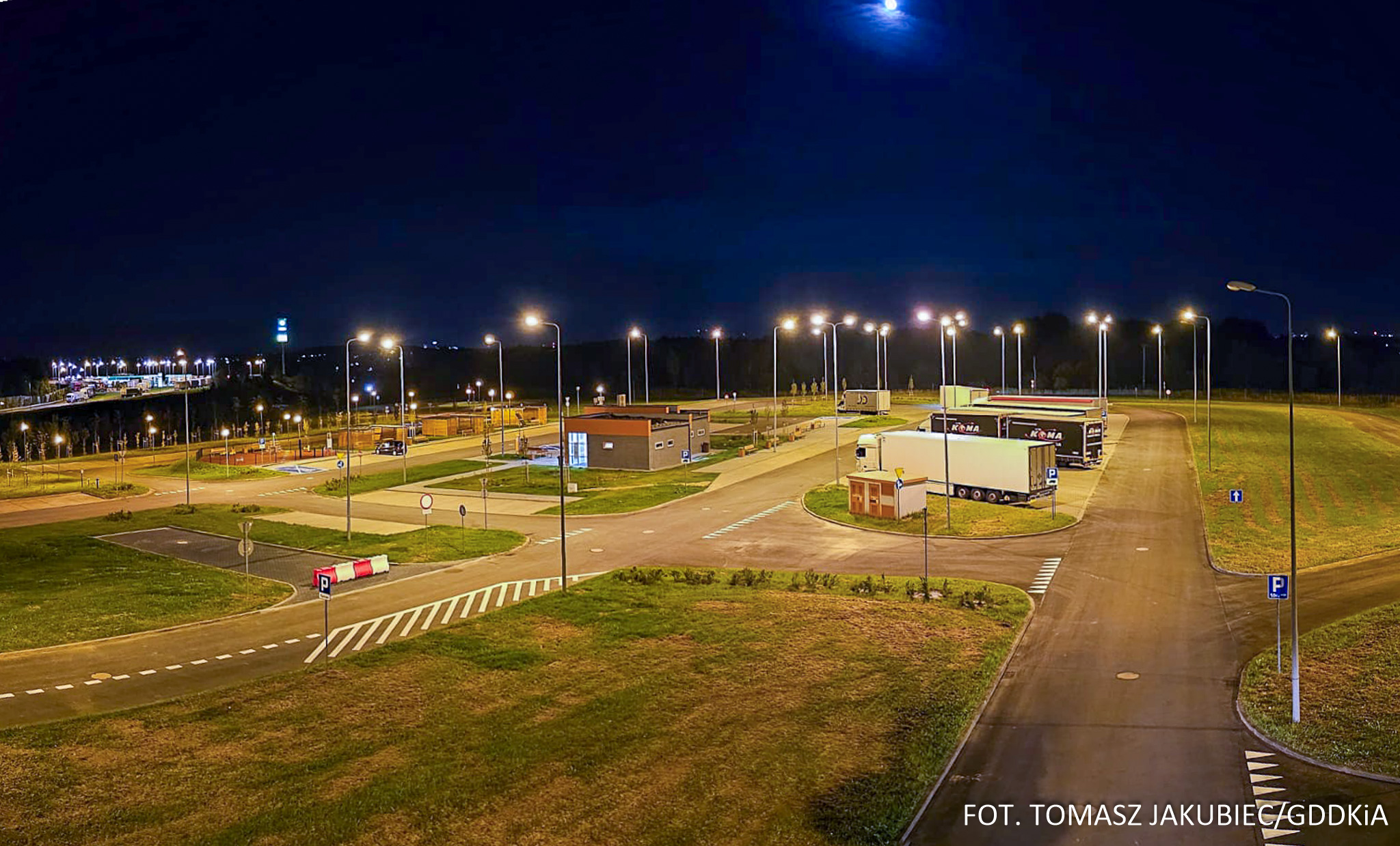Do dyspozycji jest 165 miejsc parkingowych dla pojazdów osobowych, 10 dla autobusów i 20 dla samochodów ciężarowych. Obok obecnych jezdni manewrowych i stanowisk postojowych powstały obiekty higieniczno-sanitarne oraz strefy do odpoczynku. Na najmłodszych podróżników czeka plac zabaw. Zawodowi kierowcy pojazdów ciężarowych będą mogli skorzystać z konstrukcji do odśnieżania samochodów ciężarowych.