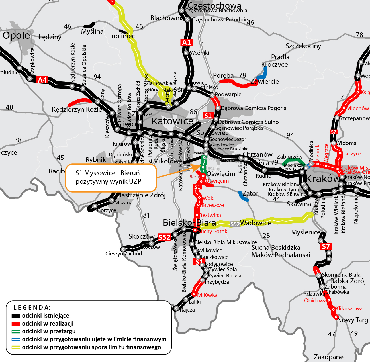 Pozytywnym wynikiem zakończyła się standardowa, uprzednia kontrola przetargu na zaprojektowanie i wybudowanie S1 Mysłowice - Bieruń, którą przeprowadził Prezes Urzędu Zamówień Publicznych. Kolejnym krokiem, po przedstawieniu przez wykonawcę gwarancji należytego wykonania robót, będzie podpisanie umowy. Planujemy, że stanie się to na początku lipca br.