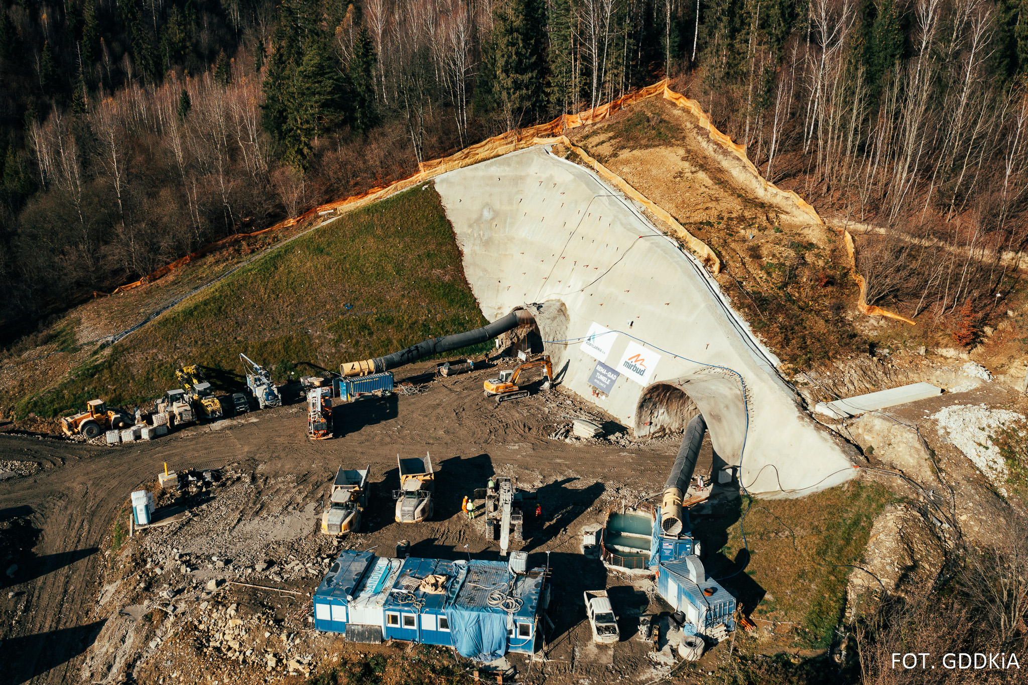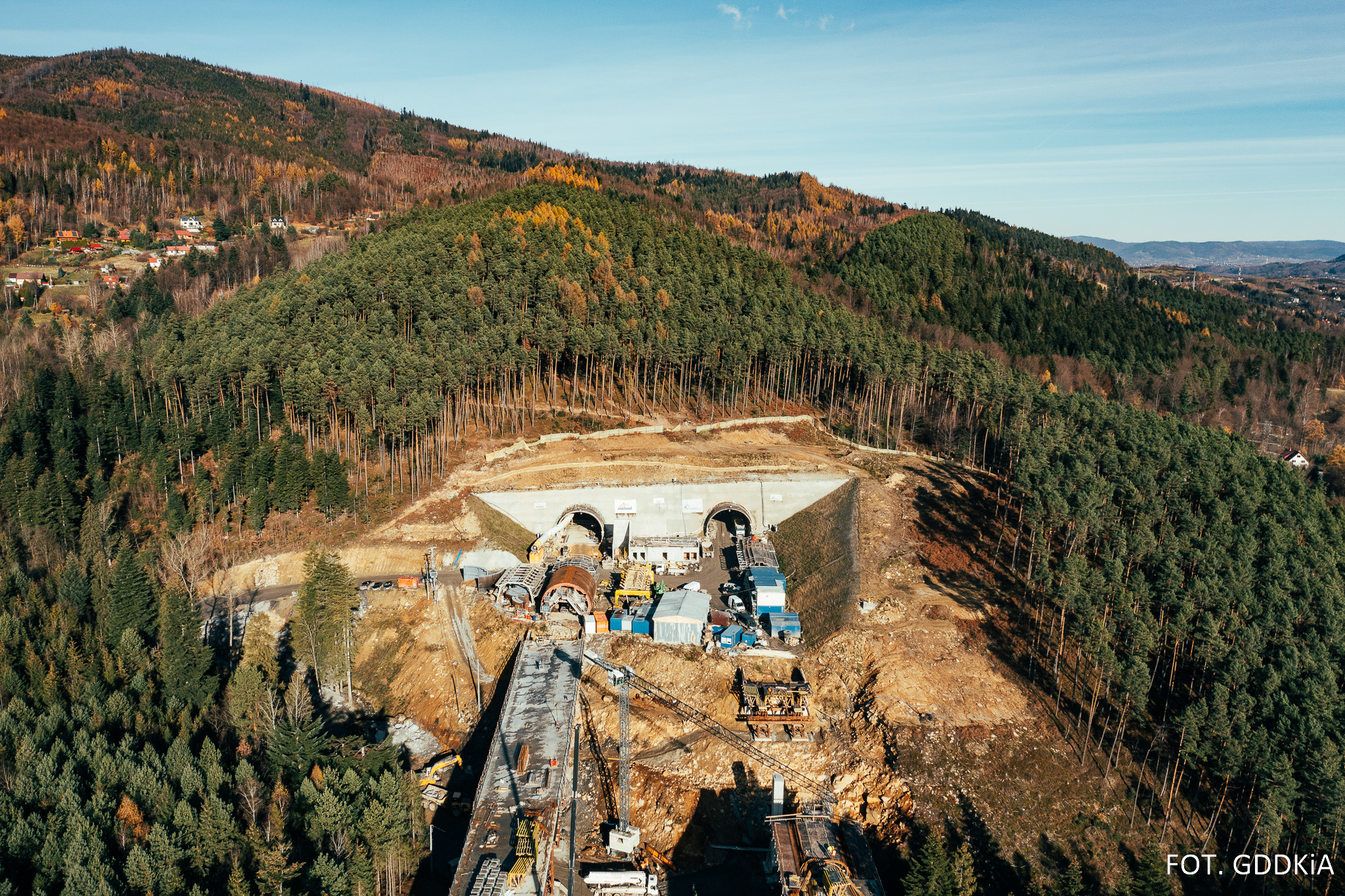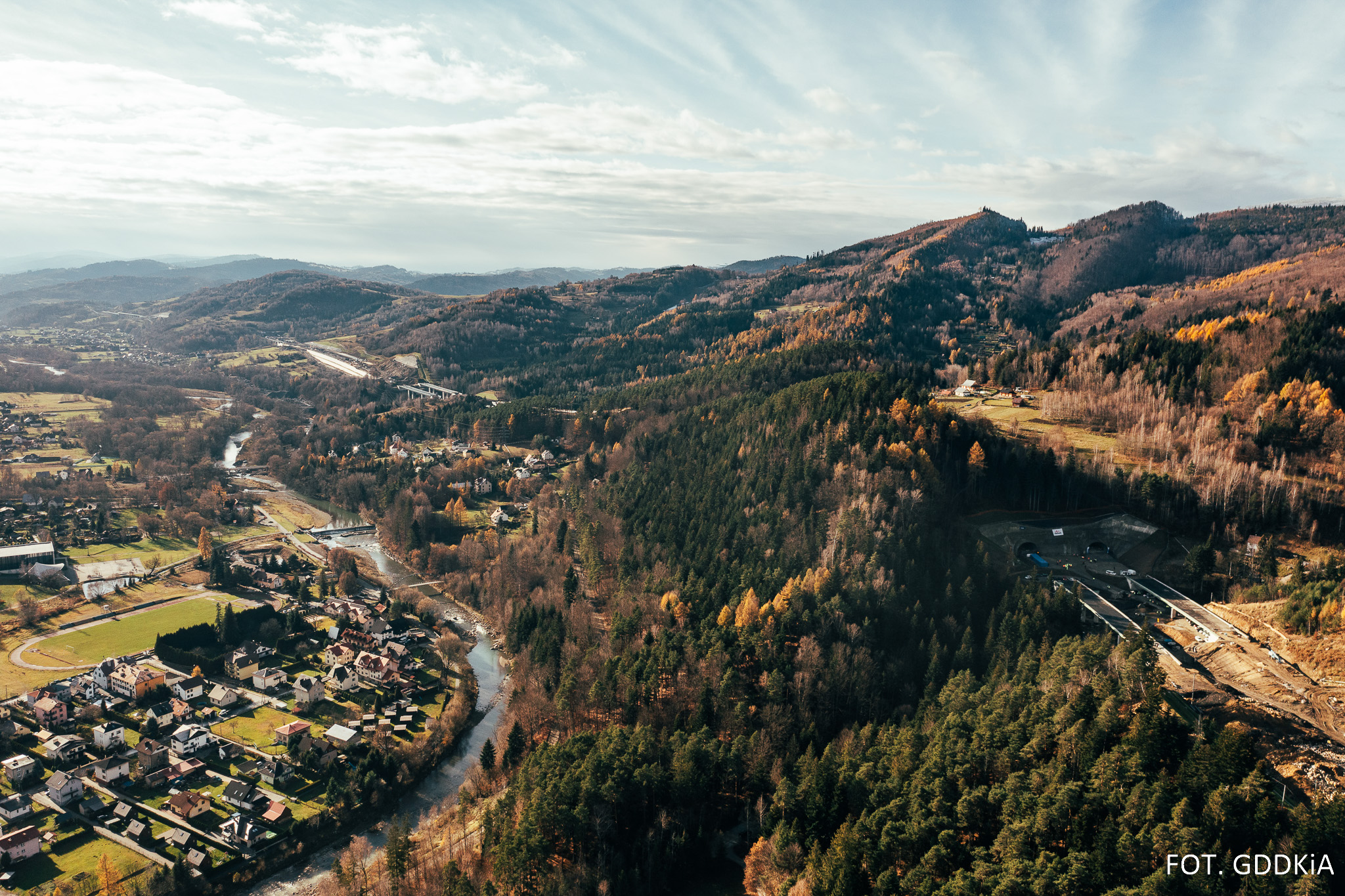 Zaawansowanie rzeczowe całości inwestycji to prawie 52 proc. Zaawansowanie robót przy budowie obiektów mostowych wynosi 60 proc, a przy realizacji zakresu drogowego 55 proc. Do tej pory wykonano już 1,323 mln m3 wykopów i 224 tys. m3 nasypów, m.in. w rejonie węzłów Przybędza i Milówka oraz w śladzie drogi głównej pomiędzy węzłami i tunelami.