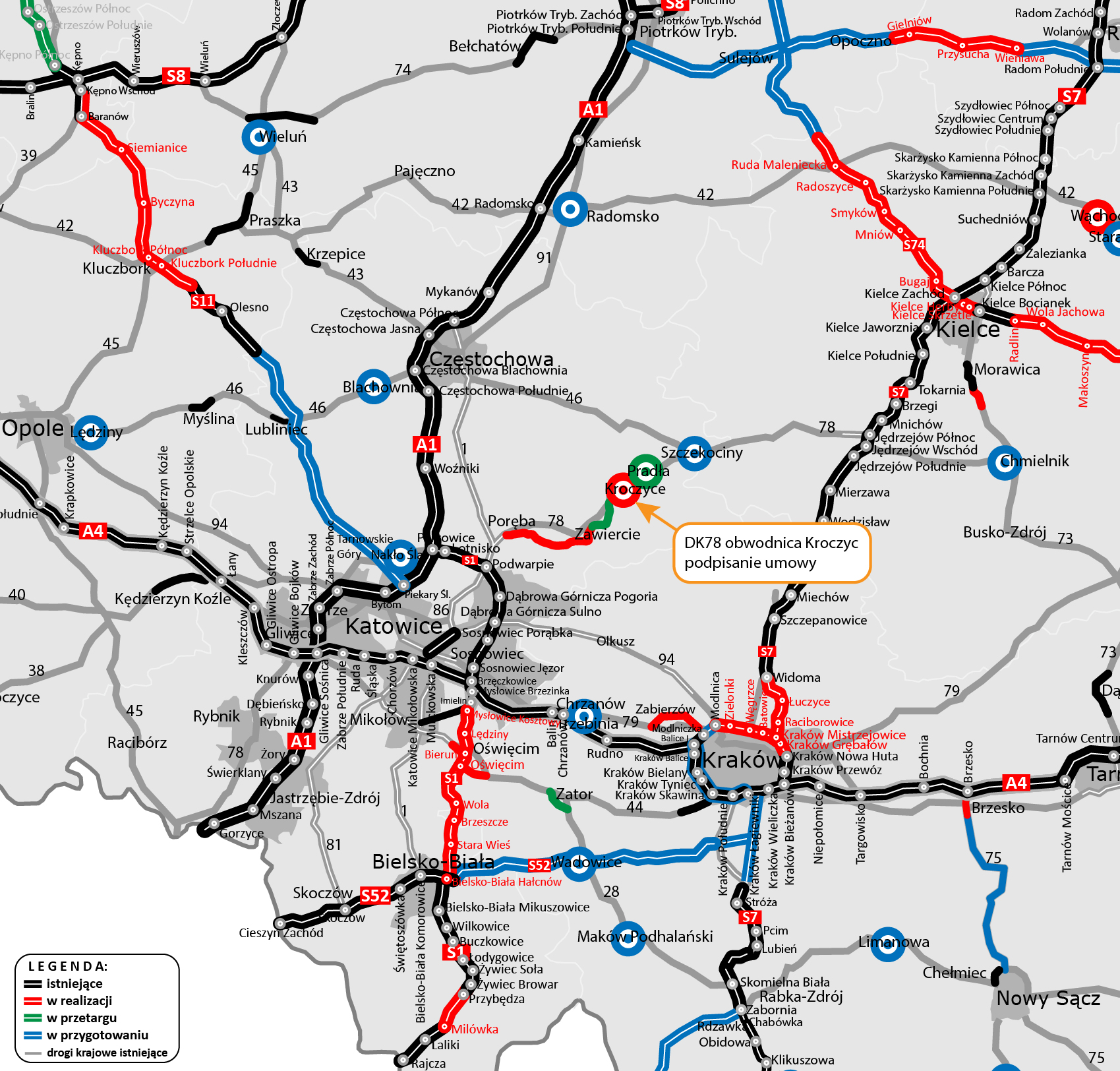 Obwodnica Kroczyc to kolejny element nowego przebiegu DK78 między Siewierzem a Szczekocinami, który obejmuje blisko 50 km. To część Programu budowy 100 obwodnic, który ma na celu poprawę bezpieczeństwa i przepustowości na DK78. Dzięki tym inwestycjom DK78 ominie zurbanizowane i niebezpieczne miejsca, co przyczyni się do poprawy bezpieczeństwa mieszkańców oraz zwiększenia przepustowości połączeń z A1, DK11 i w przyszłości S11.