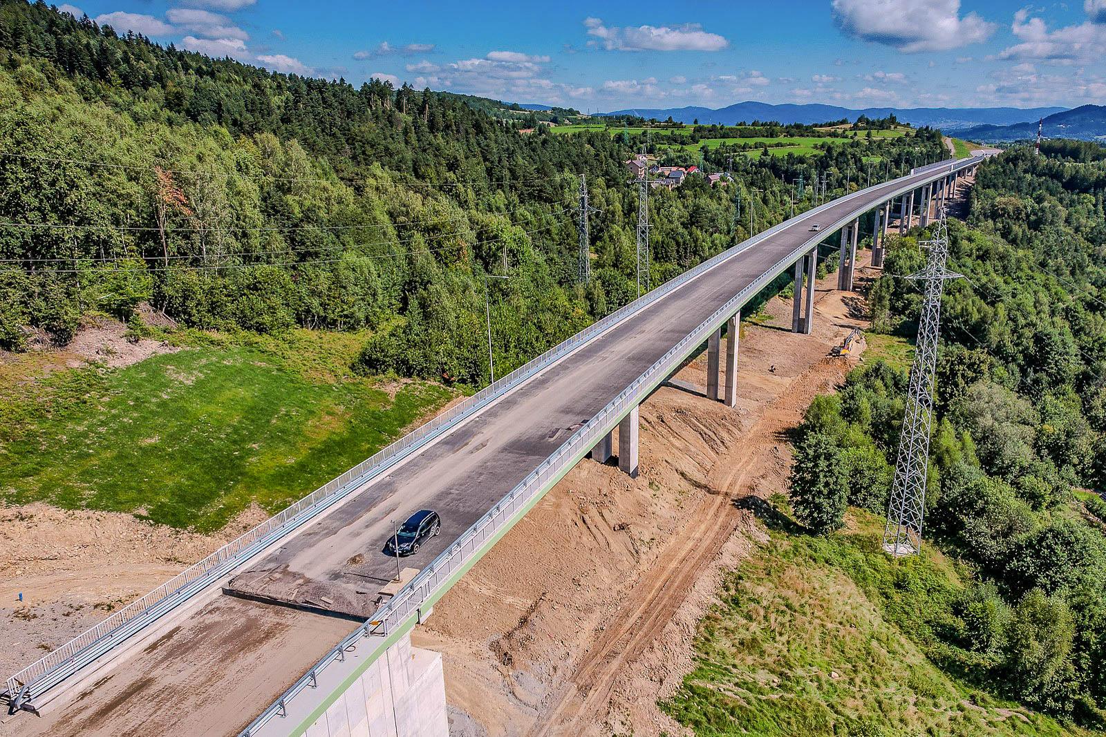 Blisko 82 proc. osiągnęło zaawansowanie prac na 8,5-kilometrowym odcinku drogi ekspresowej S1 Przybędza – Milówka. Prace mostowe są na finiszu. Ich zaawansowanie osiągnęło prawie 98 procent. Tylko na trzech z dziesięciu obiektów kończymy prace wykończeniowe i montaż wyposażenia.
