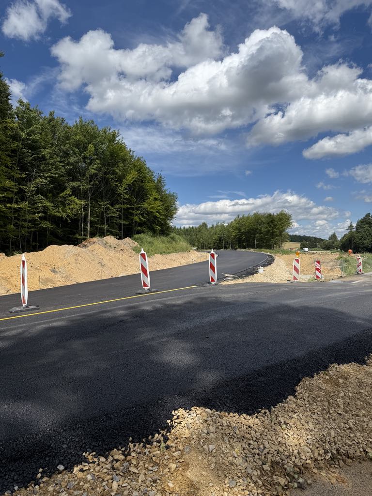 W poniedziałek (21 lipca) ułożono pierwszą warstwę podbudowy asfaltowej na dojeździe do ronda w Żerkowicach. Kolejnego dnia wykonana została warstwa wiążąca. Obecnie trwa układanie warstwy podbudowy bezpośrednio na rondzie. Do końca tego tygodnia ułożymy ponad 2,6 tys. ton mieszanki mineralno-asfaltowej. Układanie nawierzchni na rondzie w Żerkowicach powinno zakończyć się w sierpniu br. Kolejne odcinki będą asfaltowane zgodnie z harmonogramem robót, aż do zakończenia inwestycji.